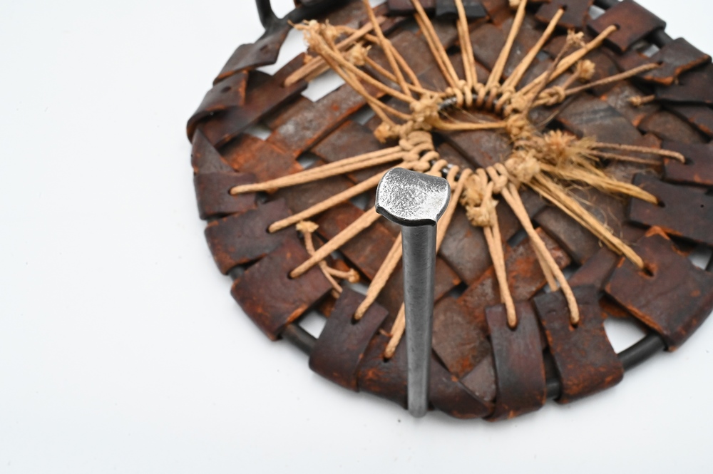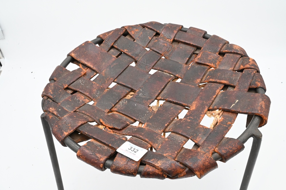 Lot 332: Lila Swift and Donald Monell Stool, iron with leather wrapped round top, height 12 inches, diameter 5 1/2 inches.