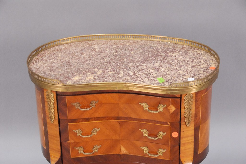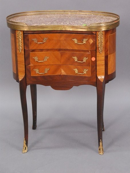 Louis XV style marble top stand veneer damage, lg. 24in.