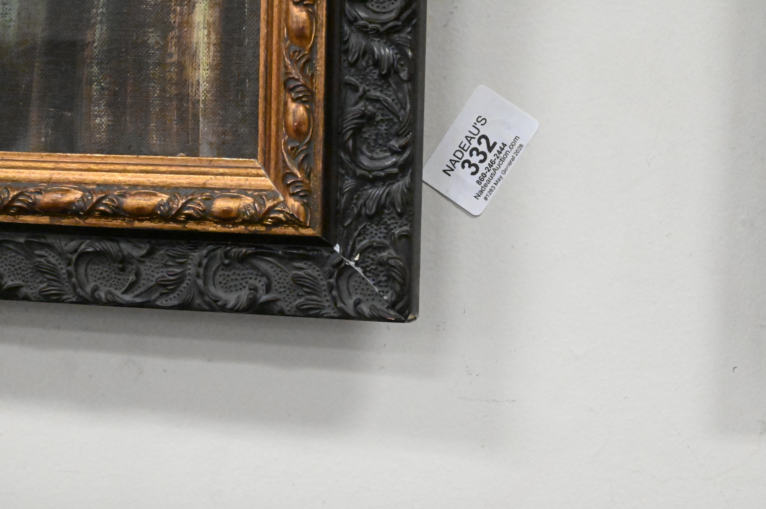 This report is provided by Nadeau’s Auction Gallery as a courtesy and reflects our opinion only. Bidders should conduct their own due diligence. The absence of a report does not imply the lot is free of issues. Assessments are based on visual inspection; unless noted, items have not been examined under UV light, movements and electrical components have not been tested, and artworks are generally not removed from frames. We are not professional conservators, and this report is not a comprehensive condition evaluation. Images provided form part of the report and should be reviewed carefully. All sales are final. For in-person inspection, please call 860-246-2444 or email info@nadeausauction.com.