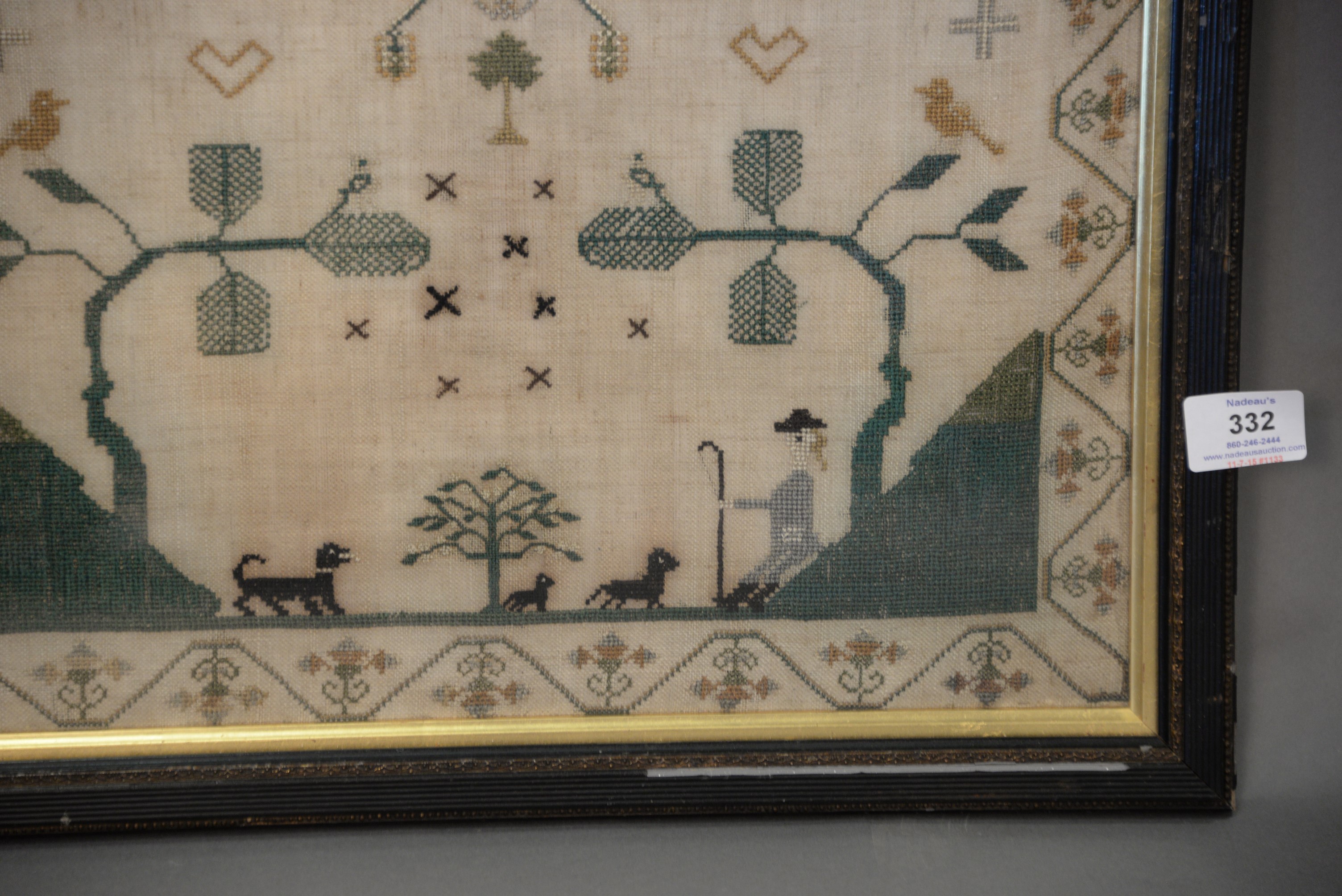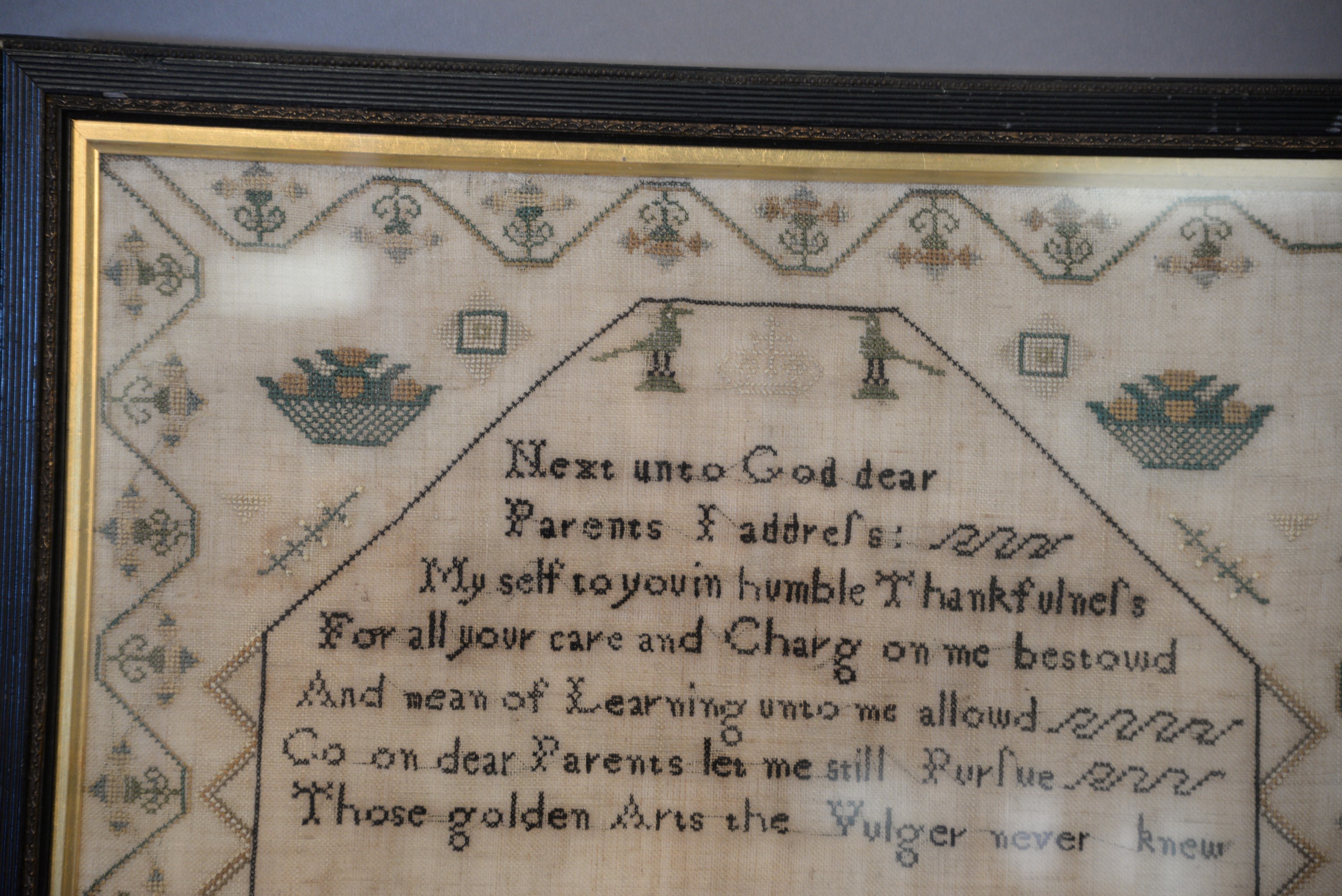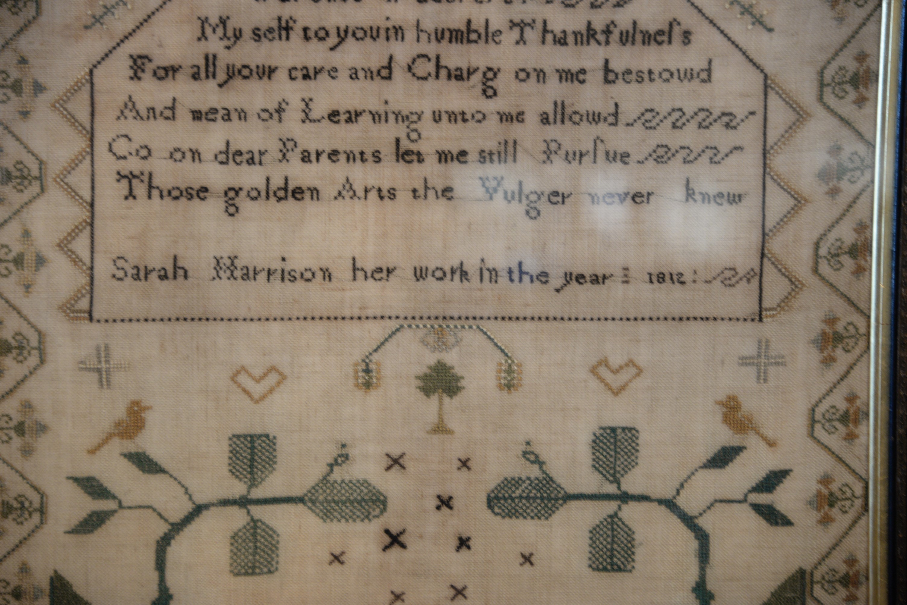 Needlework sampler, Sarah Harrison 1812. 21 x 17
