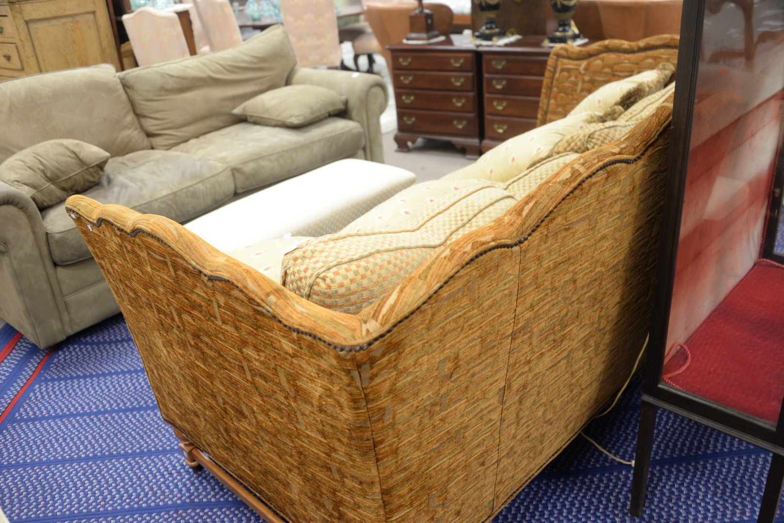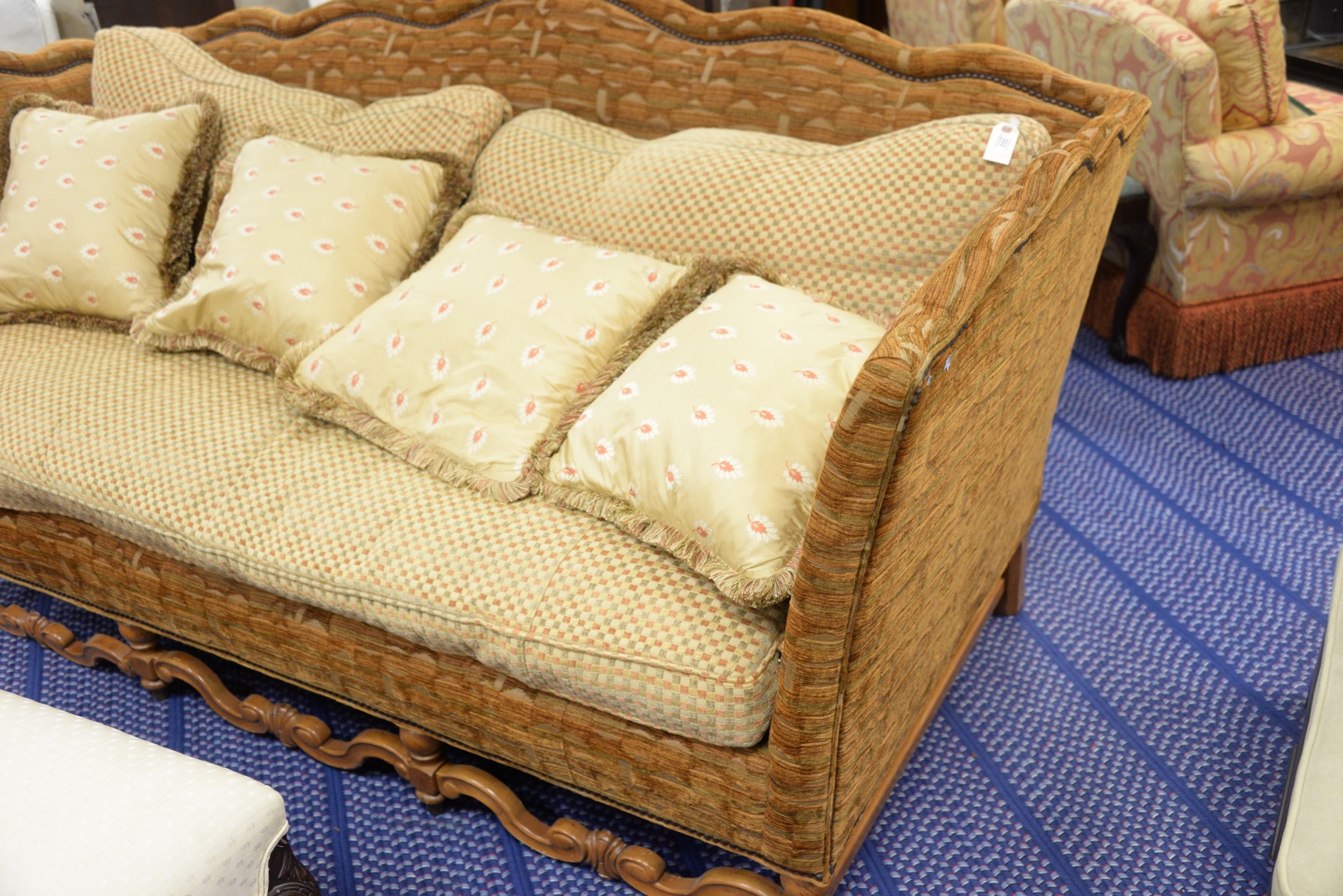 Lot 332: Stanford Furniture Company Continental Style Upholstered Sofa, height 41 inches, length 83 inches, depth 40 inches.