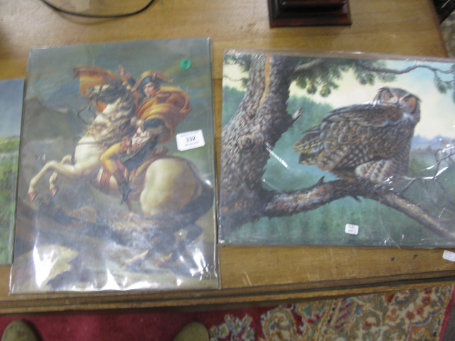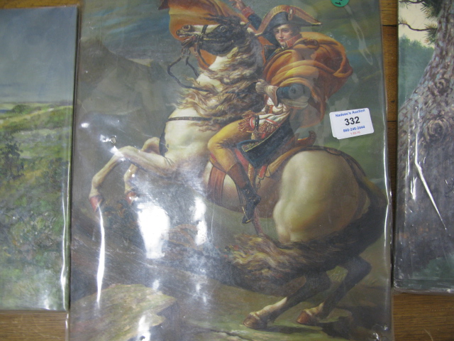 Three paintings on board probably copies 3 children in field, Napoleon on horseback and owl in pine tree.