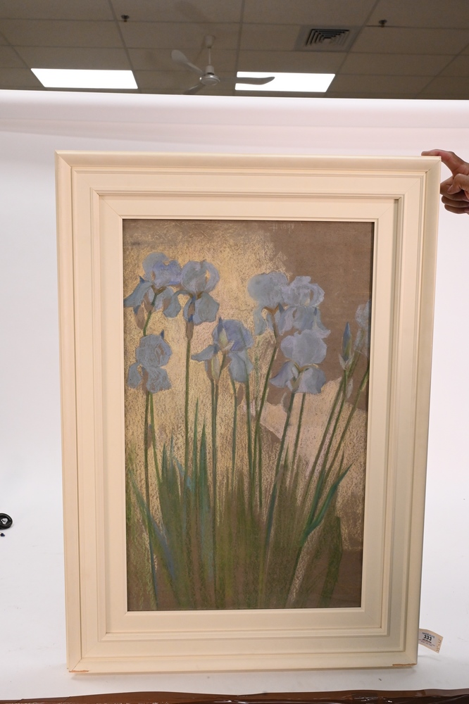 Lot 333: Giovanni Sottocornola (1855 – 1917), Iris, pastel, signed and dated top center GS 1898, sight size 29 1/2″ x 18″. Provenance: Sold a…