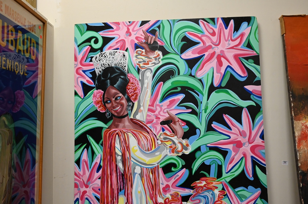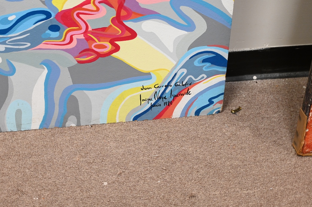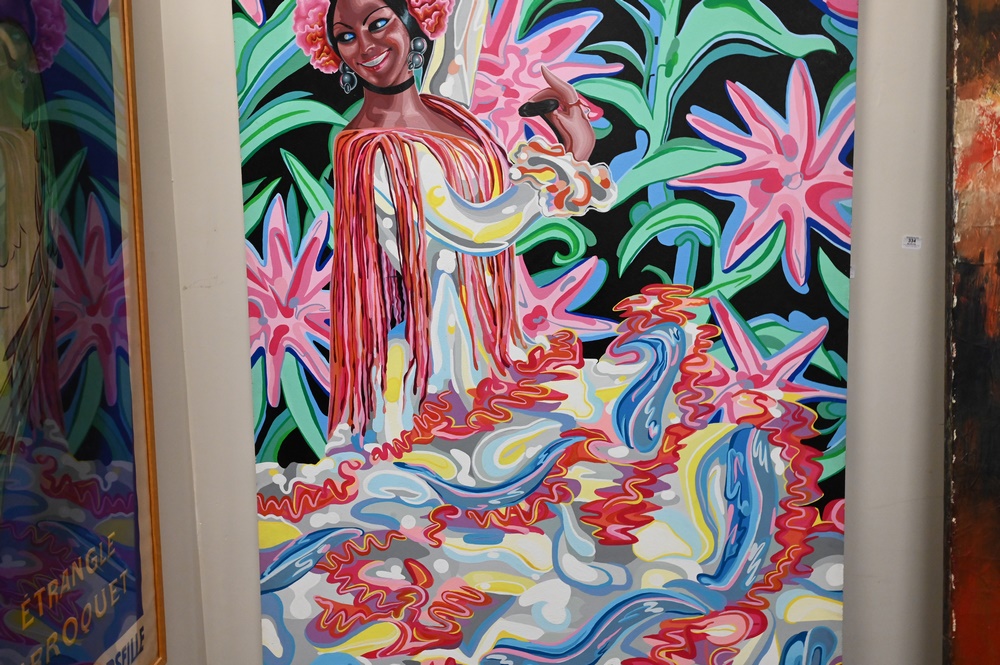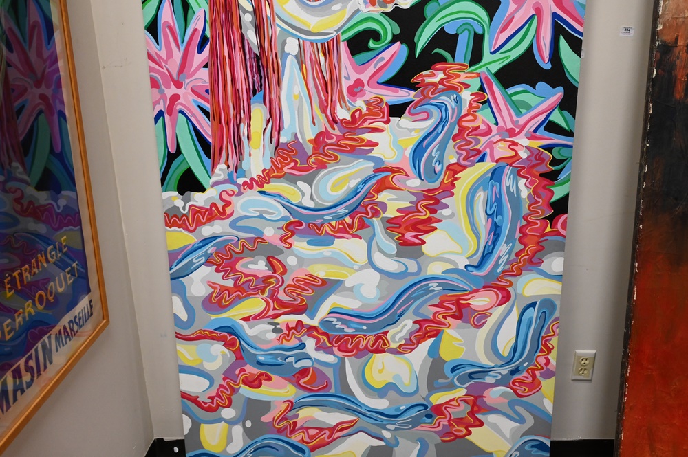 Lot 333: Juan & Enrique Costus (Spanish, b. 1953), La Marina te llama No. 6, 1980, acrylic on mixed media, signed lower right Juan Correro Galofre, signed and dated on verso, 96″ x 41.25″