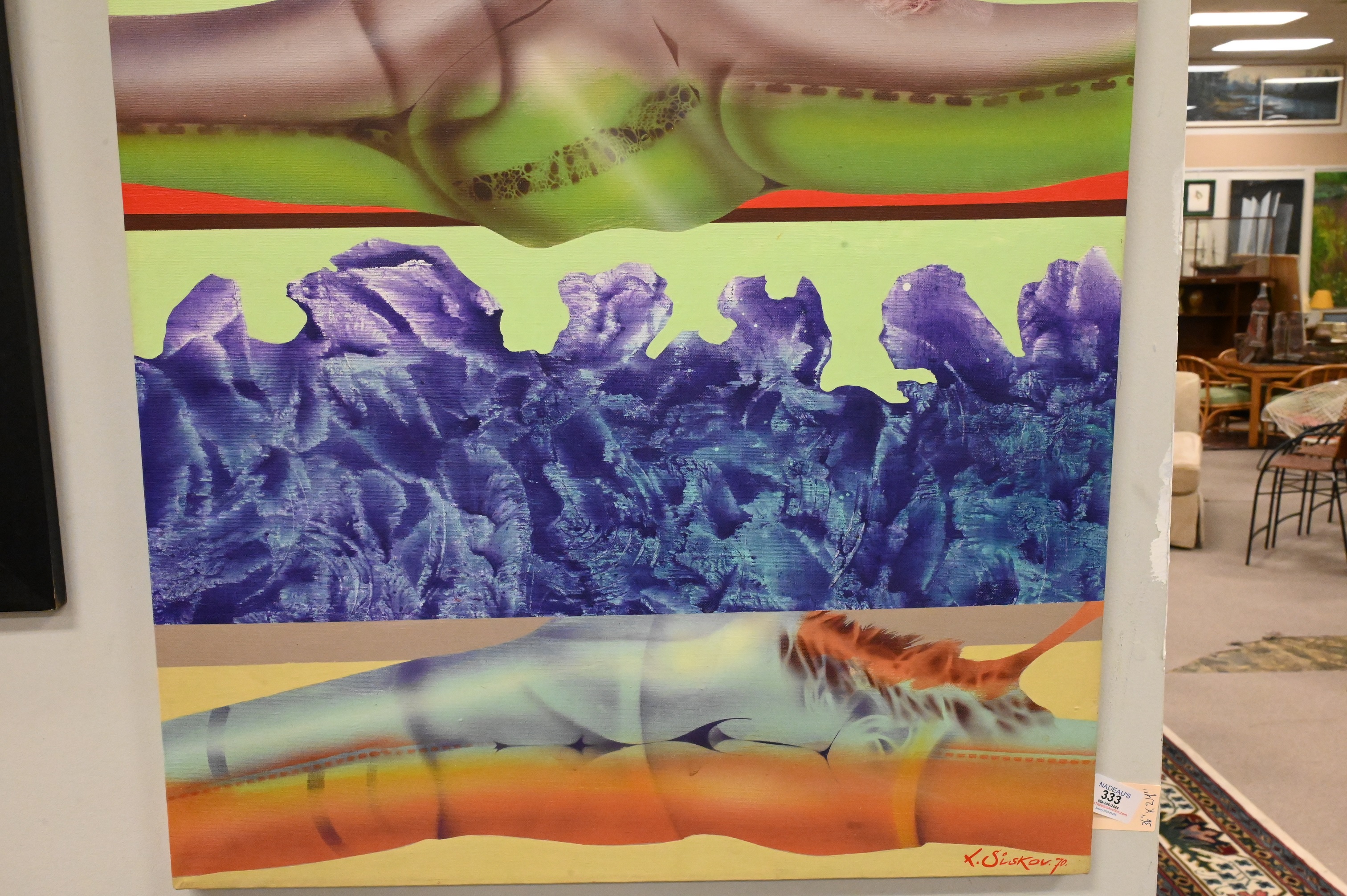 Signed lower right L. Siskov ’70, title and signature on verso L. Siskov ’70 “Morning”