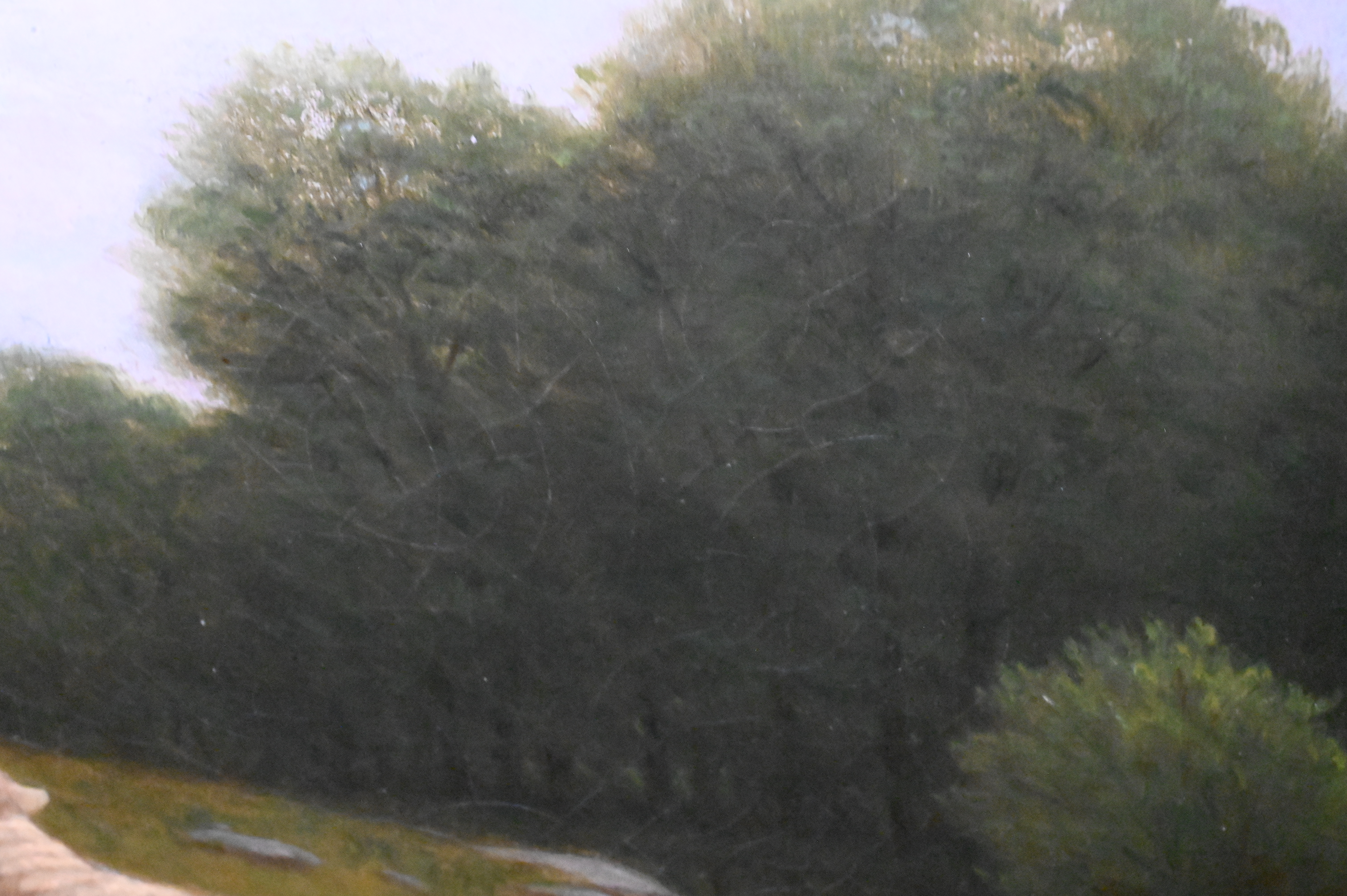 Some surface grime, inpainting lower right edge, clouds and sky Presents well overall. Some subtle craquelure
