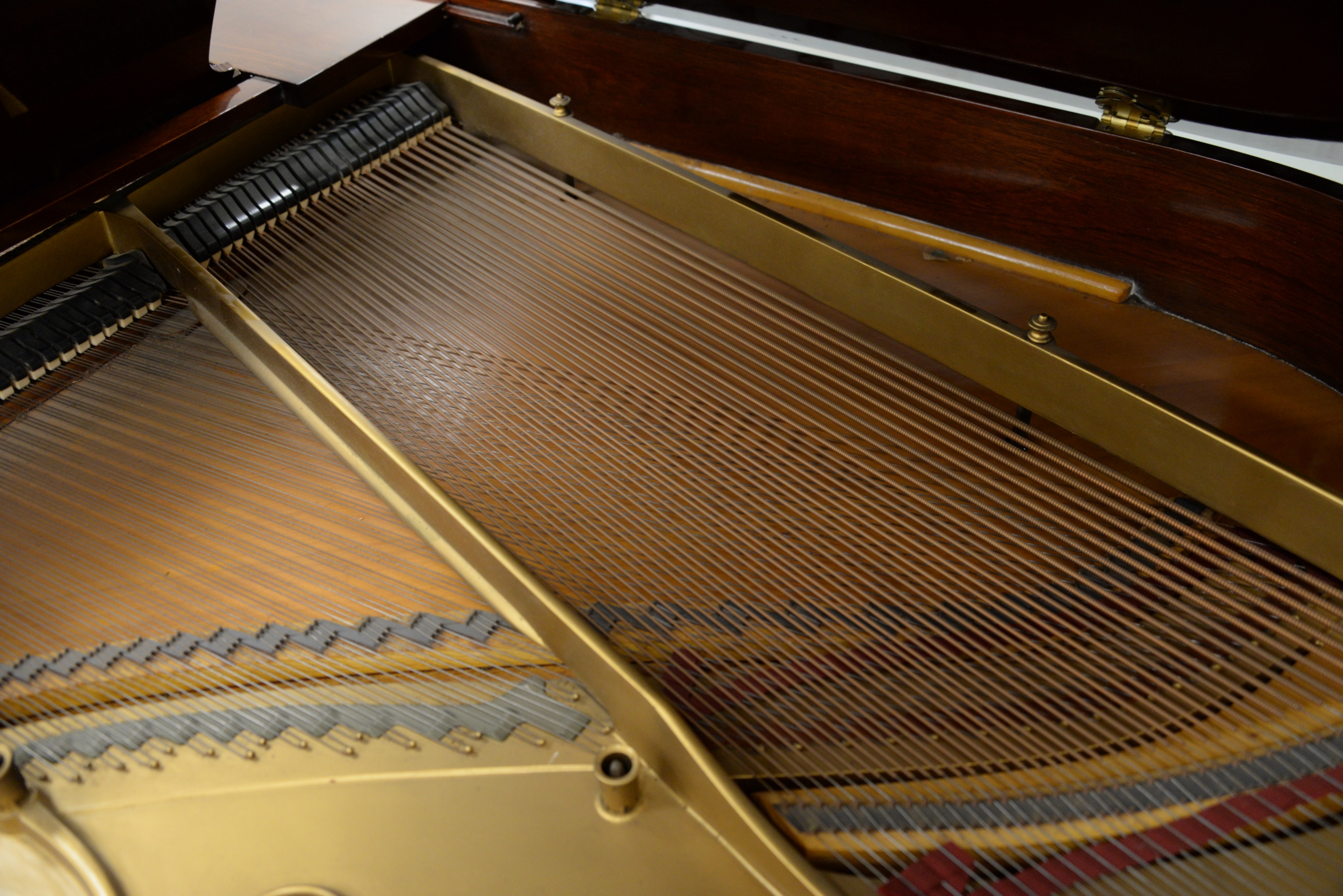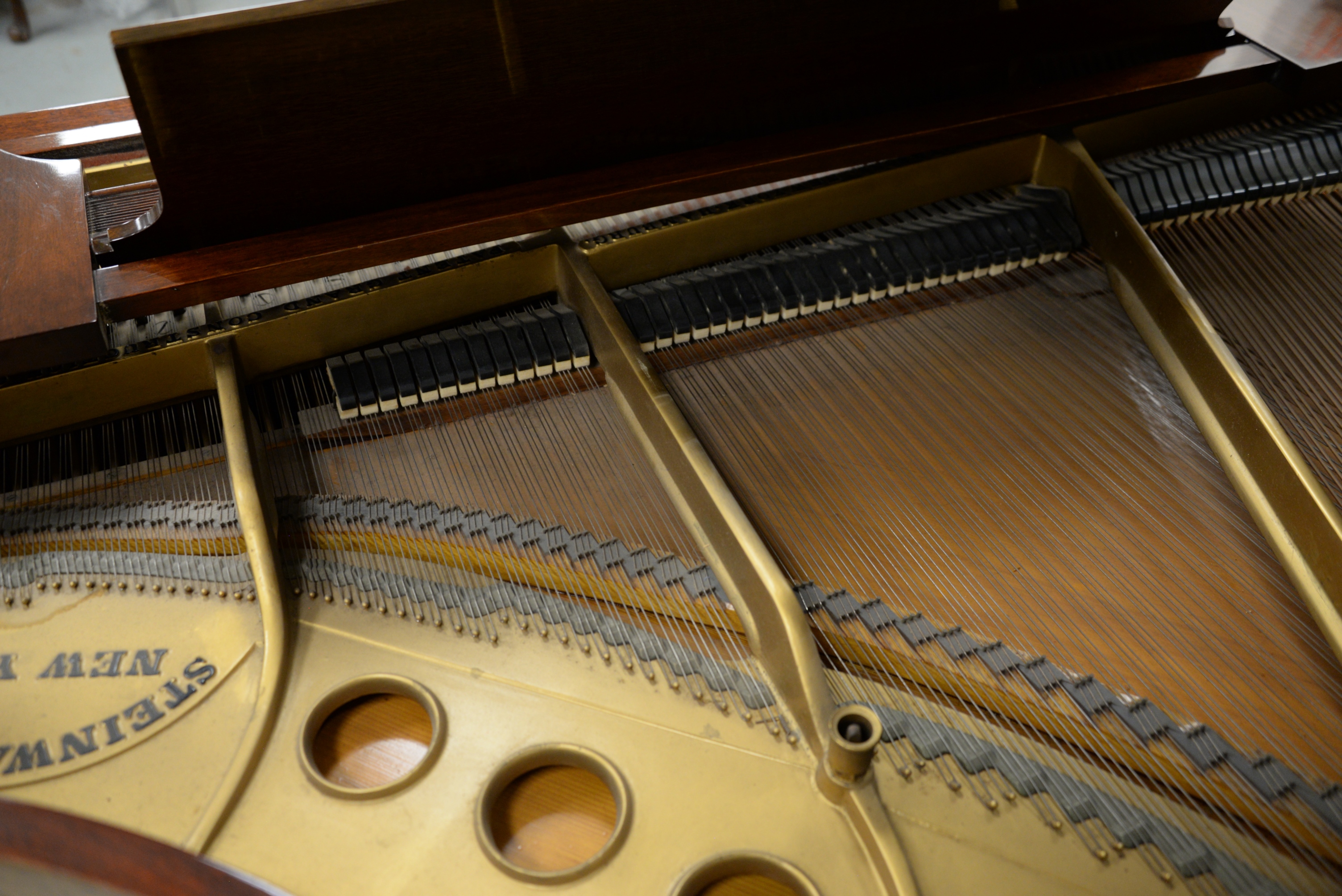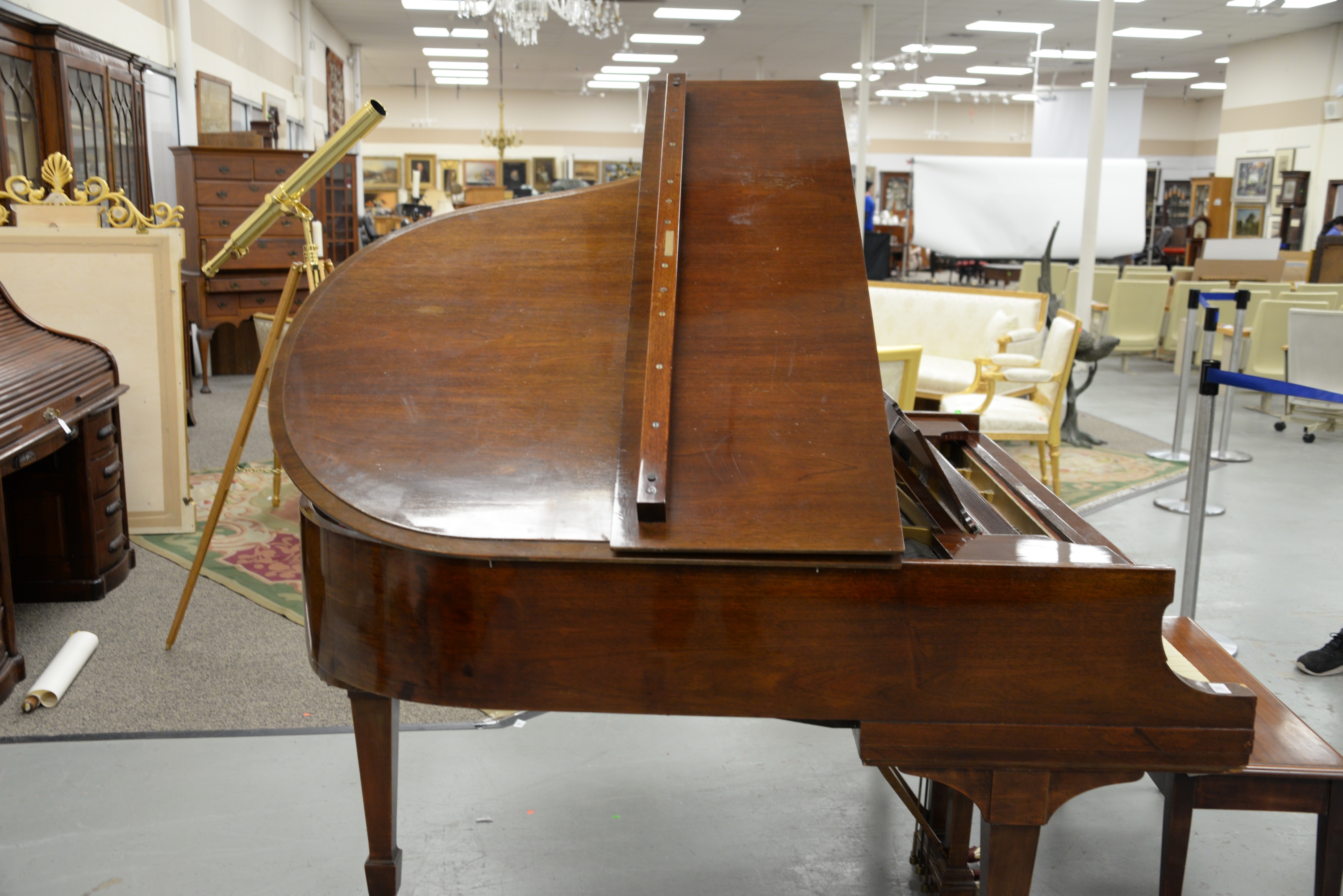 Steinway & Sons Mahogany Baby Grand Piano, circa 1912, serial no. 155108, along with bench, piano height 41 inches, length 66 inches, width 56 inches.