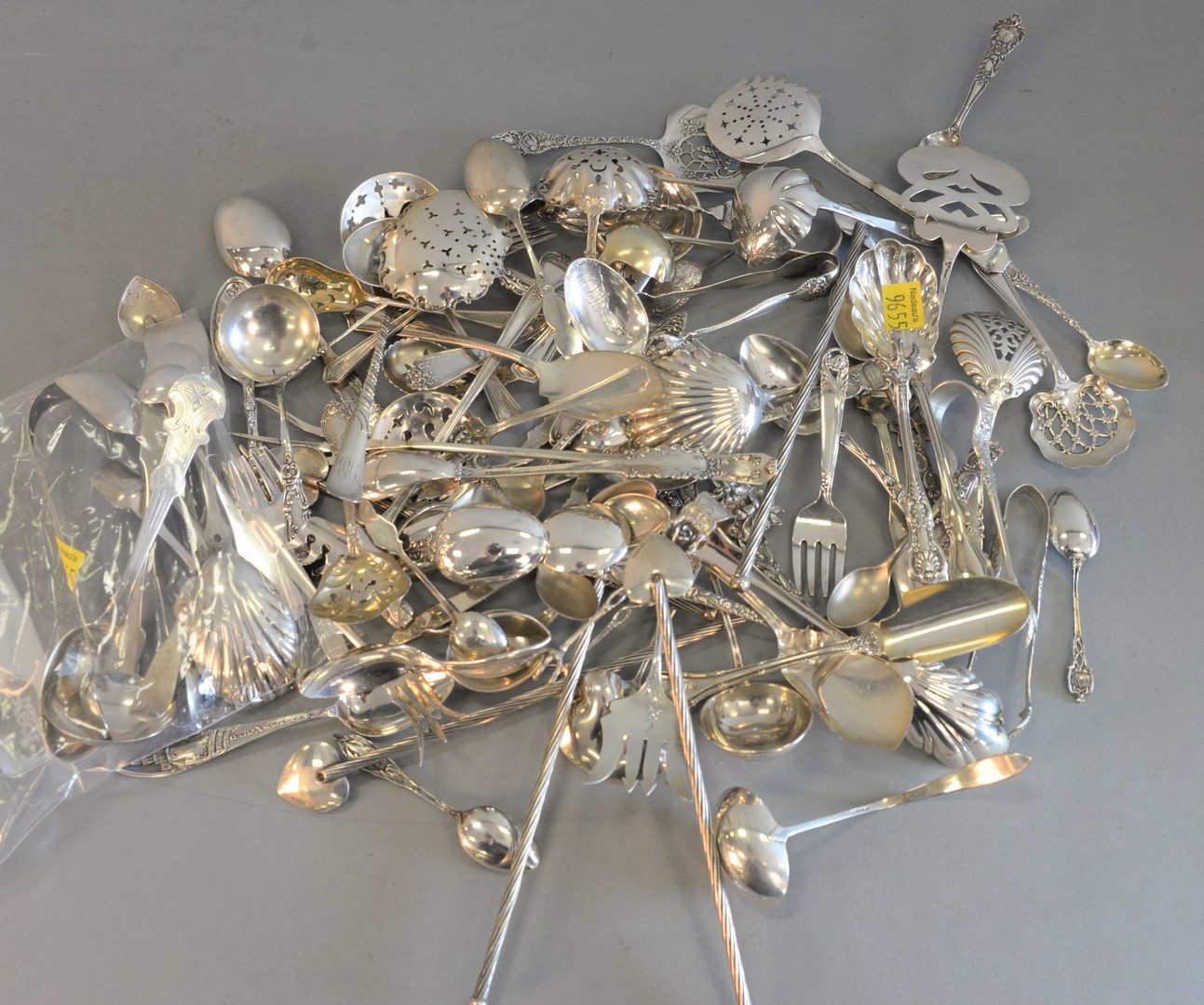to include spoons, strainer spoons, ice tea spoons, coin silver 9 pieces, and small ladles, etc.