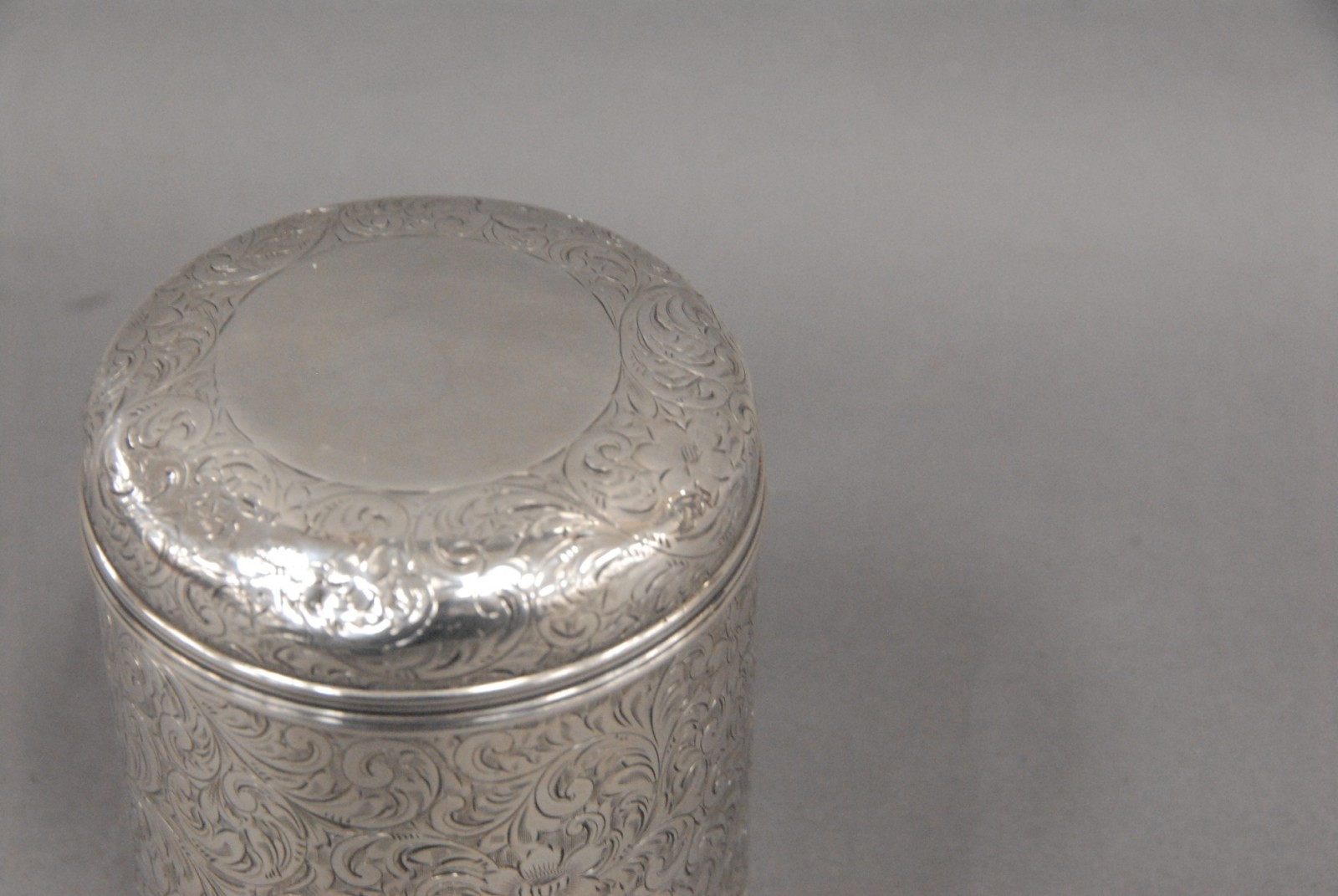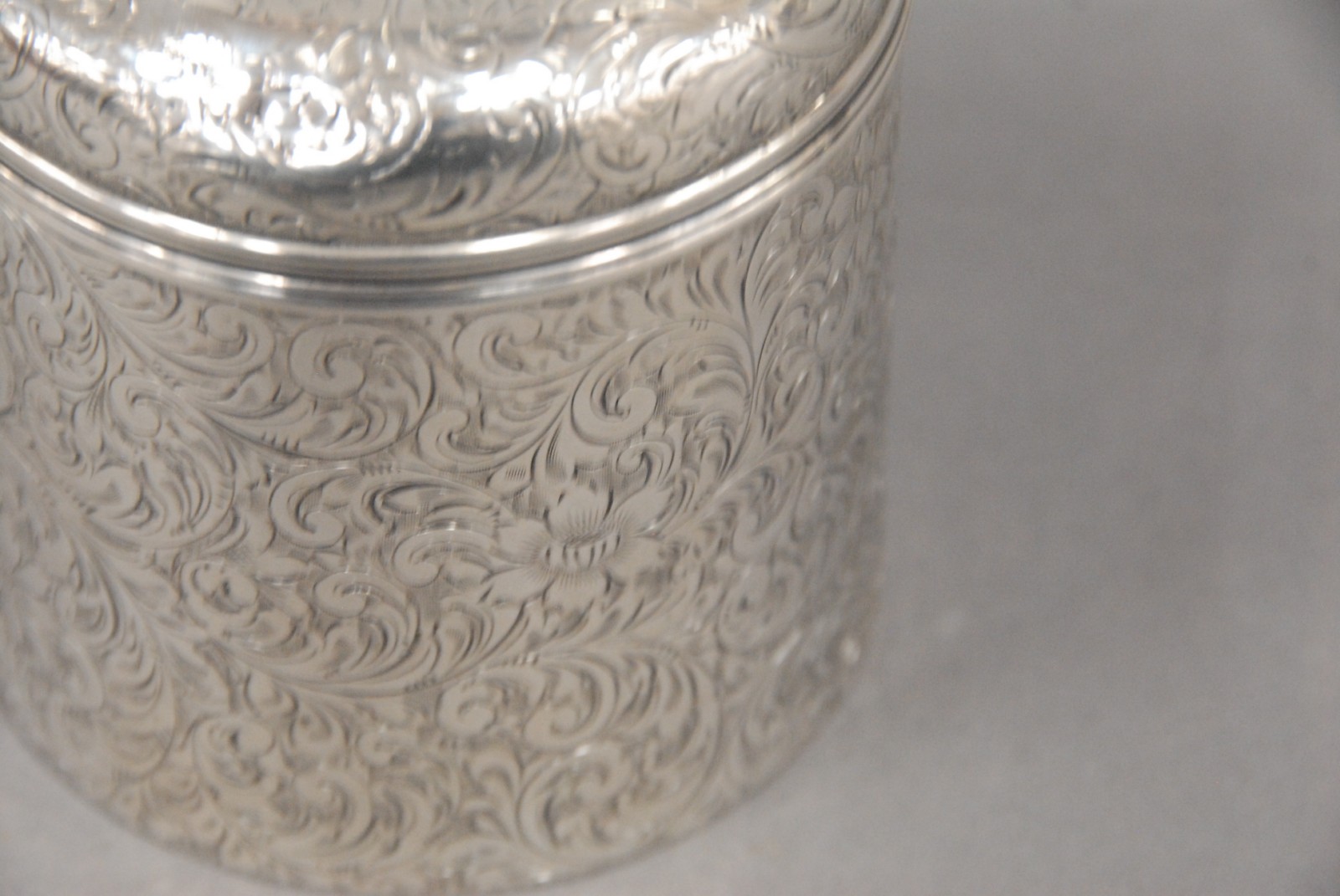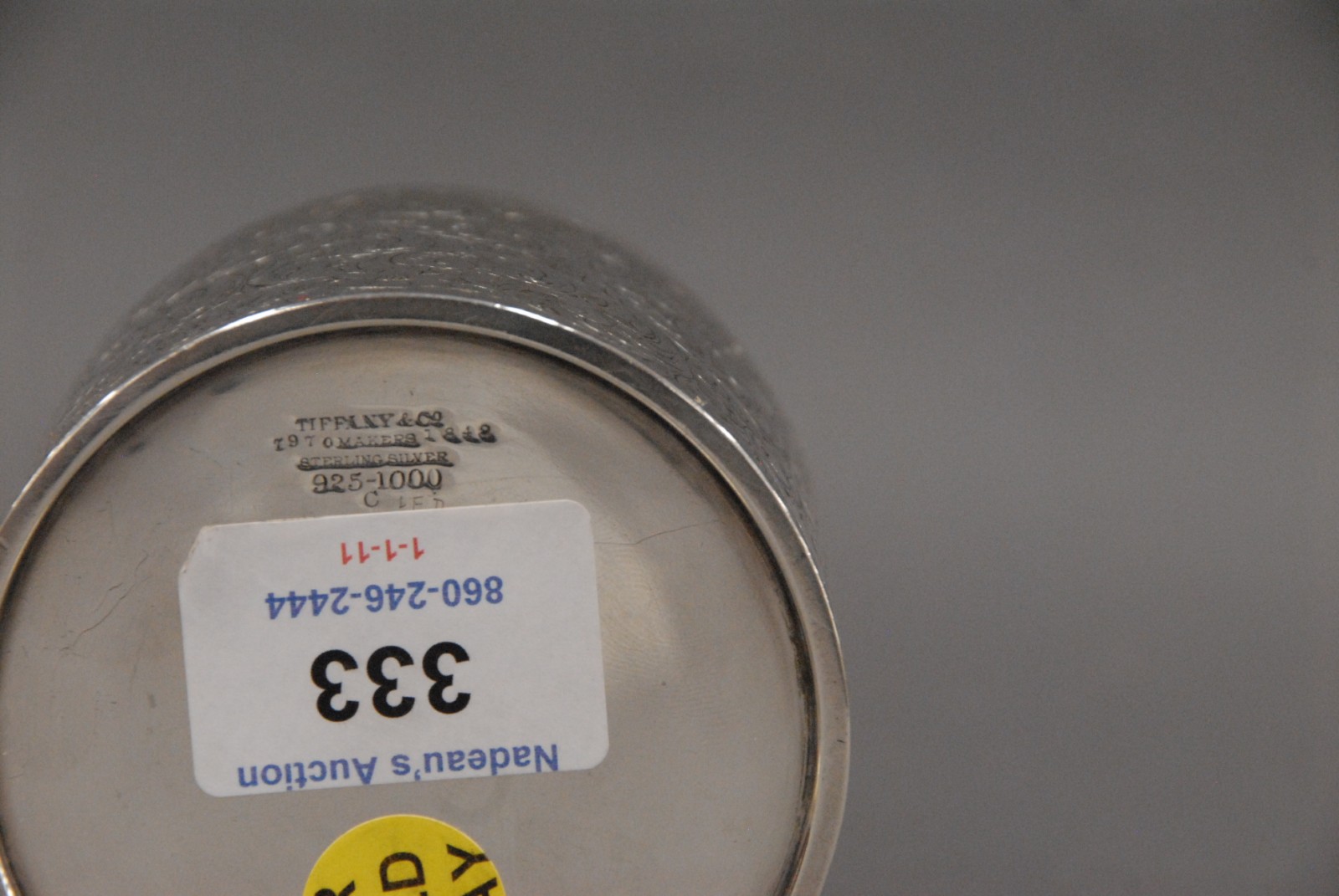 Tiffany sterling silver round covered box marked Tiffany & Company, no monogram.