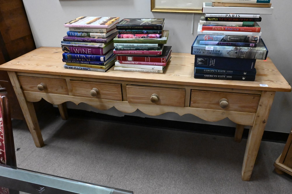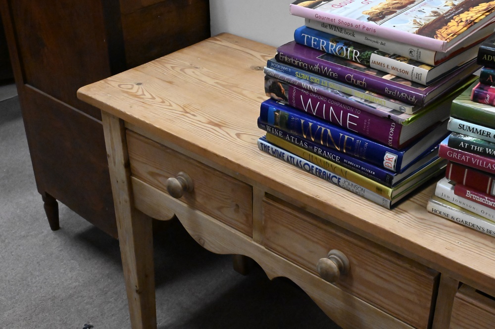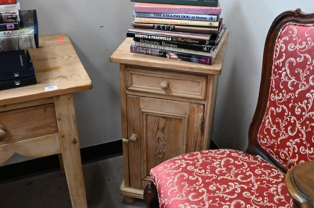 Two Piece Lot, to include English pine server, along with half commode, height 29 inches, top 19″ x 72″.