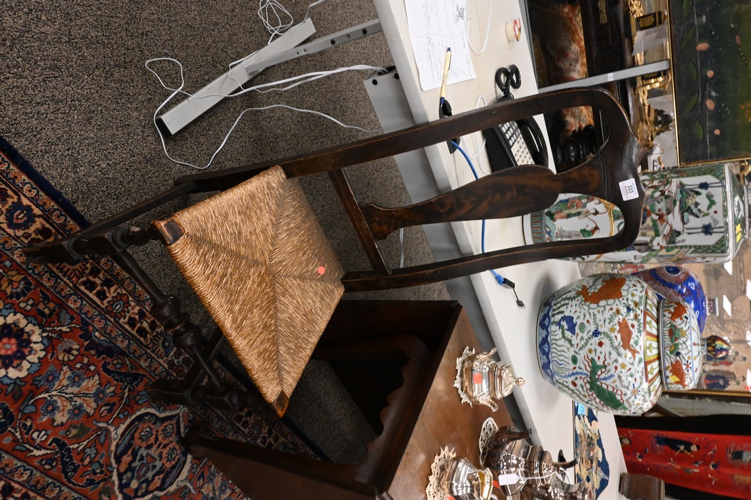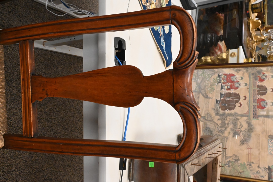 Two Queen Anne Side Chairs, to include one having paint decoration with rush seat, one refinished; each with Spanish feet, heights 40 1/2 and 42 1/2 inches. Provenance: Estate of Peter Tillou, Litchfield, Connecticut.