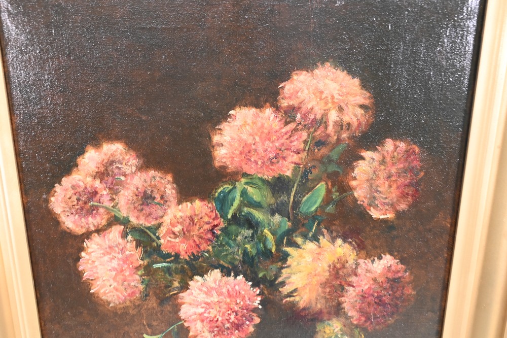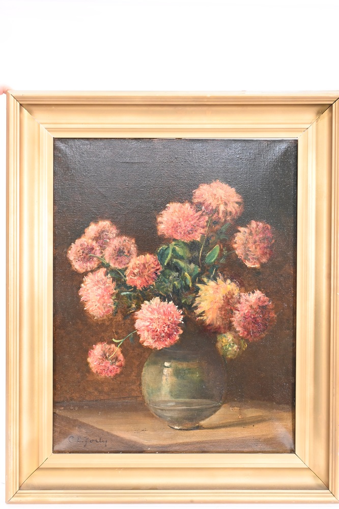Lot 334: Charles Ethan Porter (1847 – 1923), still life with chrysanthemums, oil on canvas, 23″ x 18″, signed lower left C.E. Porter. Provena…