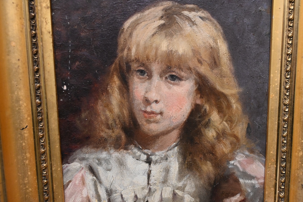 Coessin, portrait of a young woman, oil on panel, signed top left Coessin, 10 1/2″ x 8 1/4″. Provenance: Connecticut Personal Collection of American Antiques and Oriental Rugs.