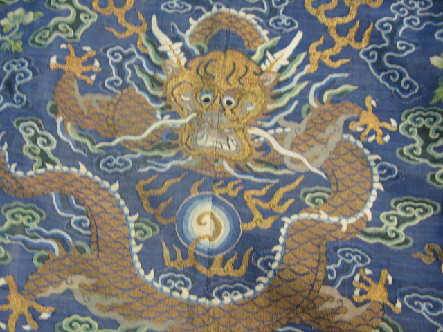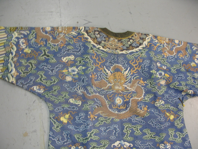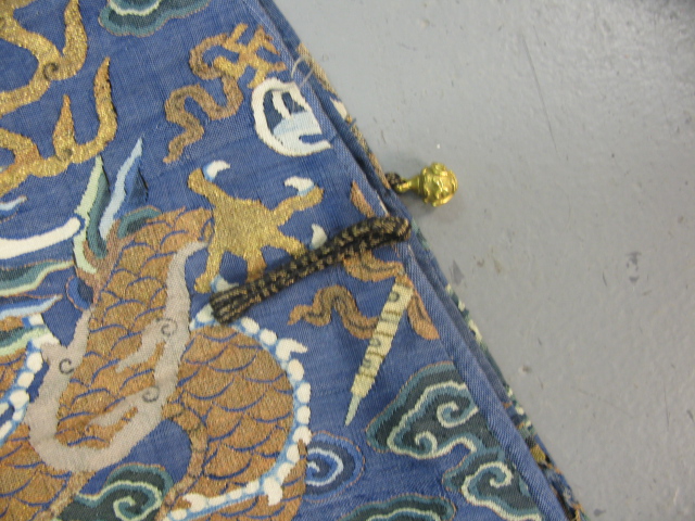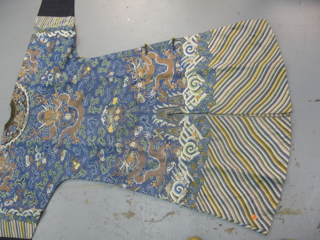 Lot 334: Embroidered blue silk dragon robe having nine