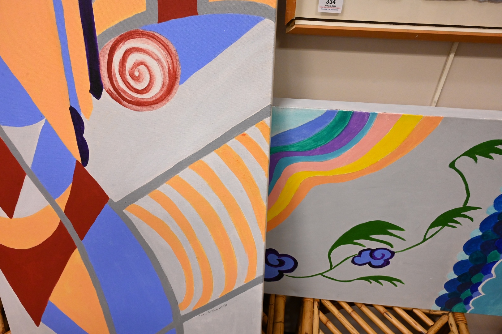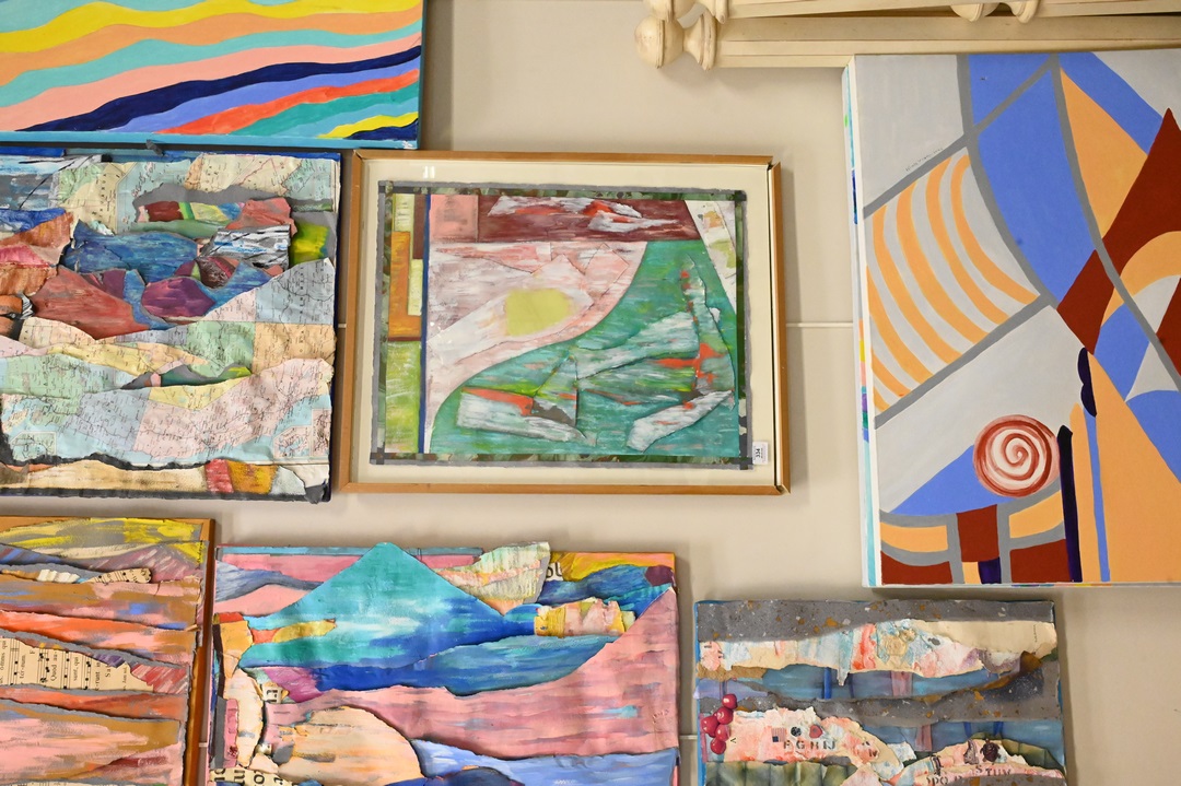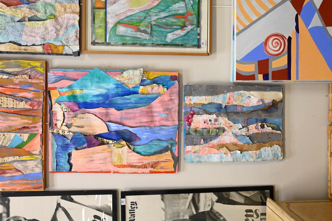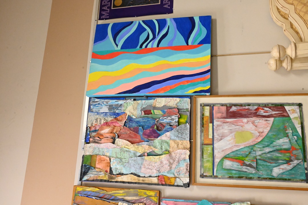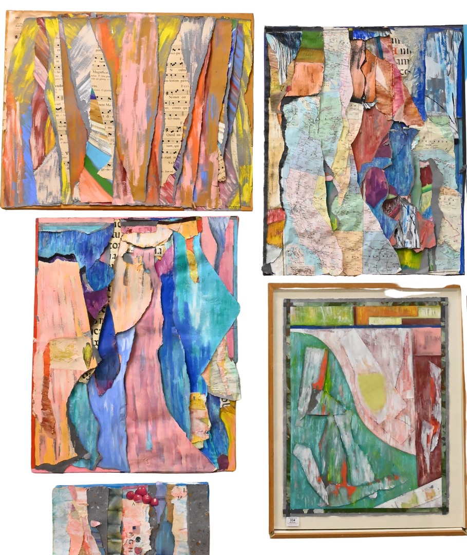 Group of Eight Faith Dorian Wright Paintings, to include watercolor and mixed media collage; largest 35″ x 24″.