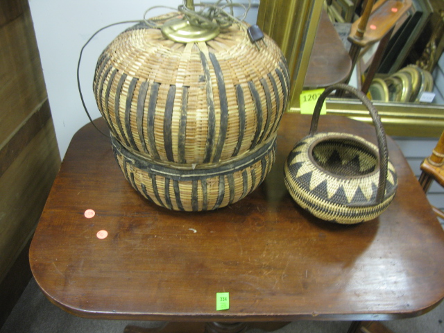Lot 334: Grouping to include large candlestand, woven
