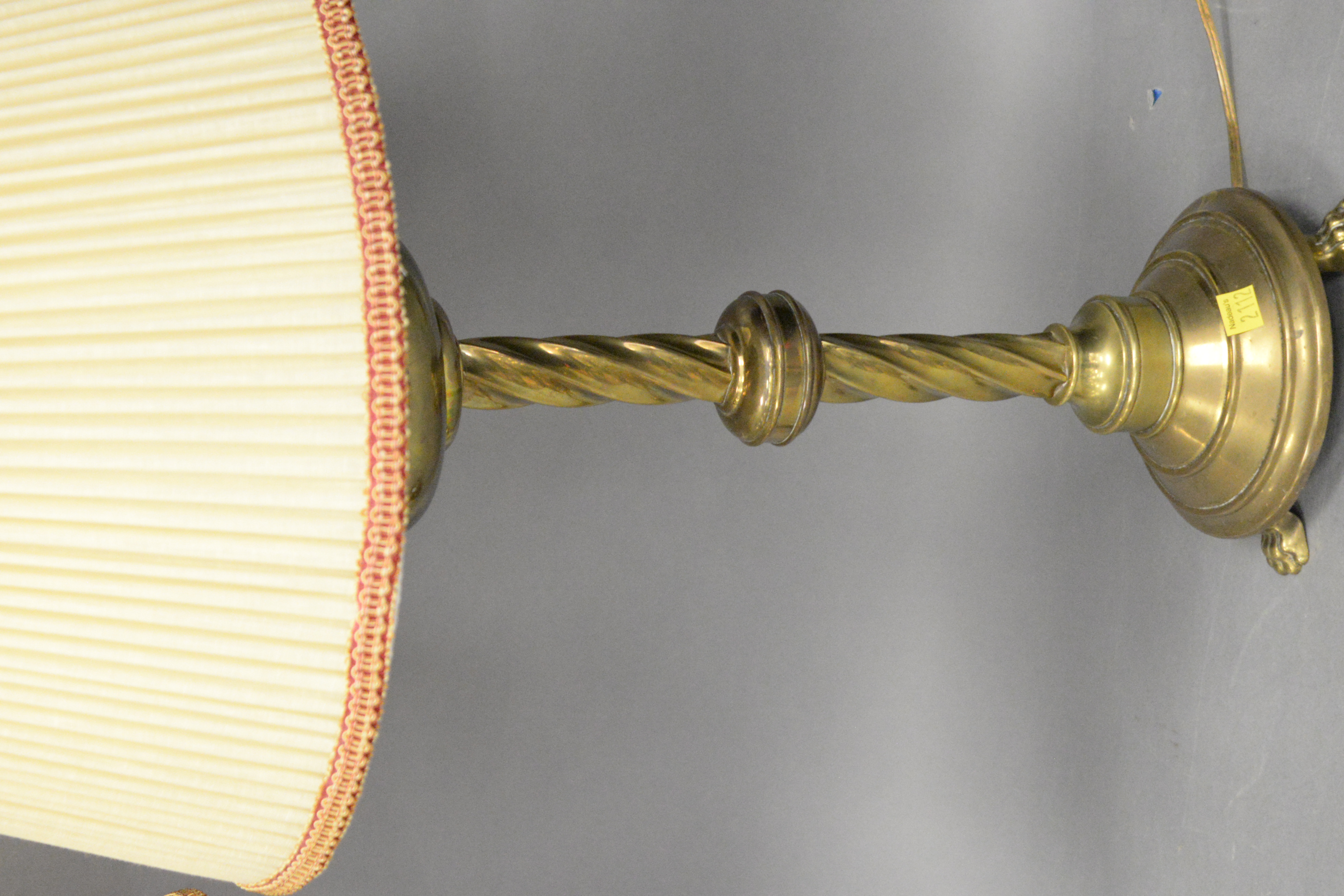 Pair of 19th Century Brass Candlesticks, now wired as lamps on three clawed feet, height 23 inches