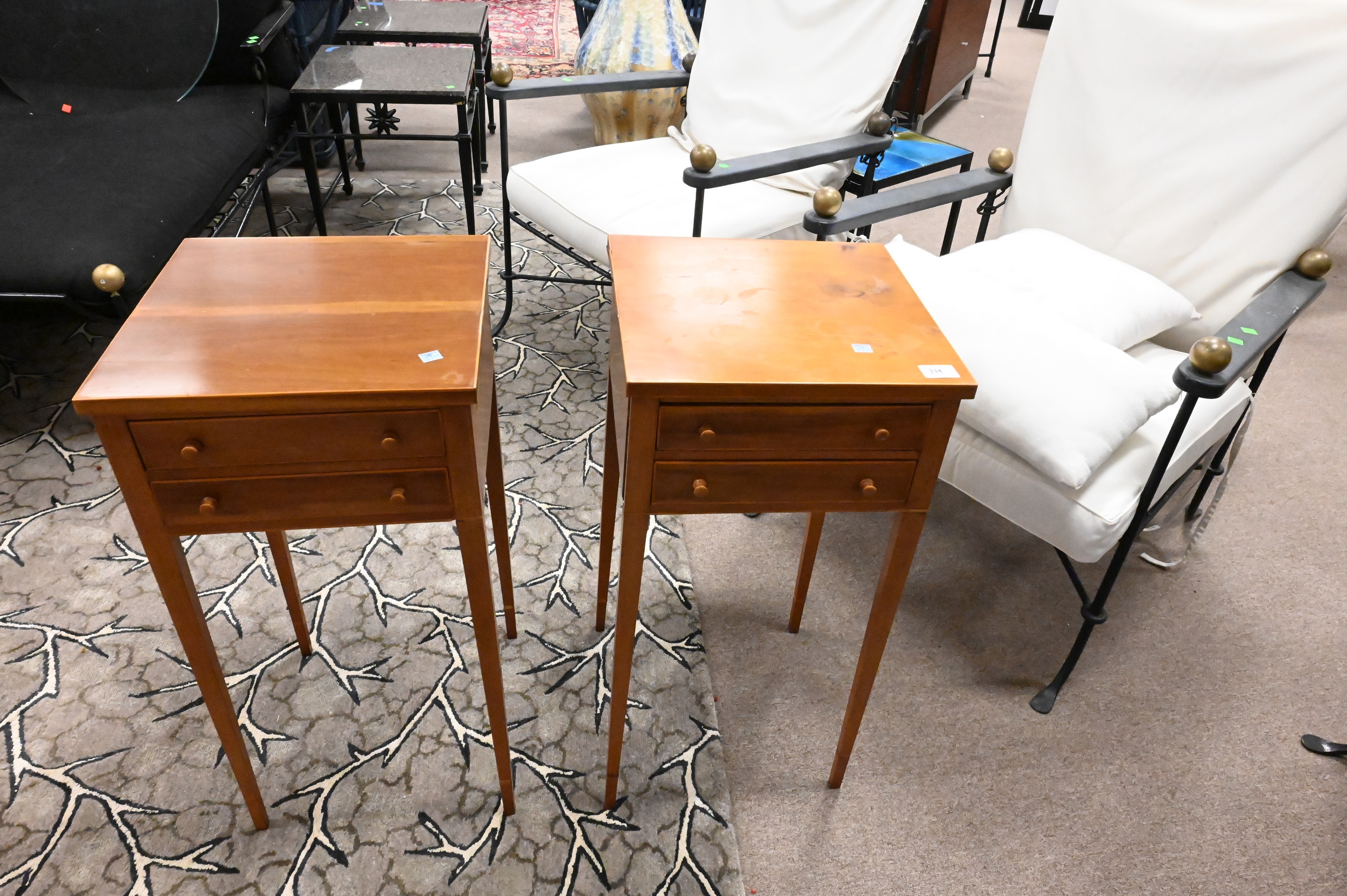each having two drawers and tapered legs