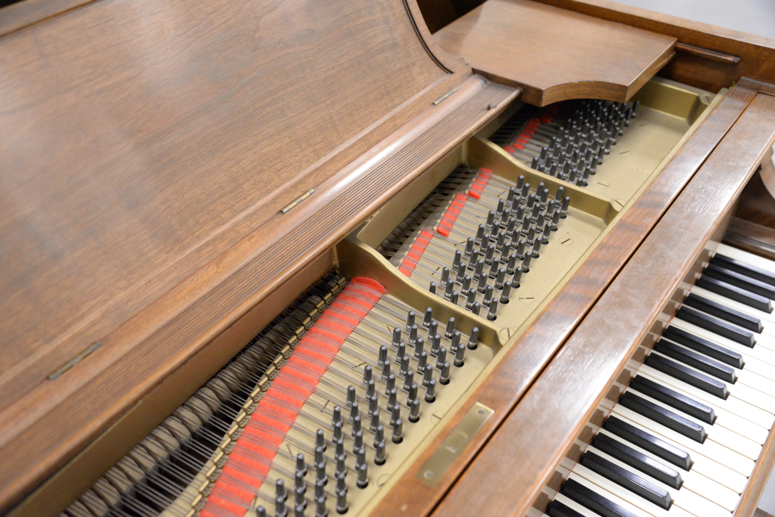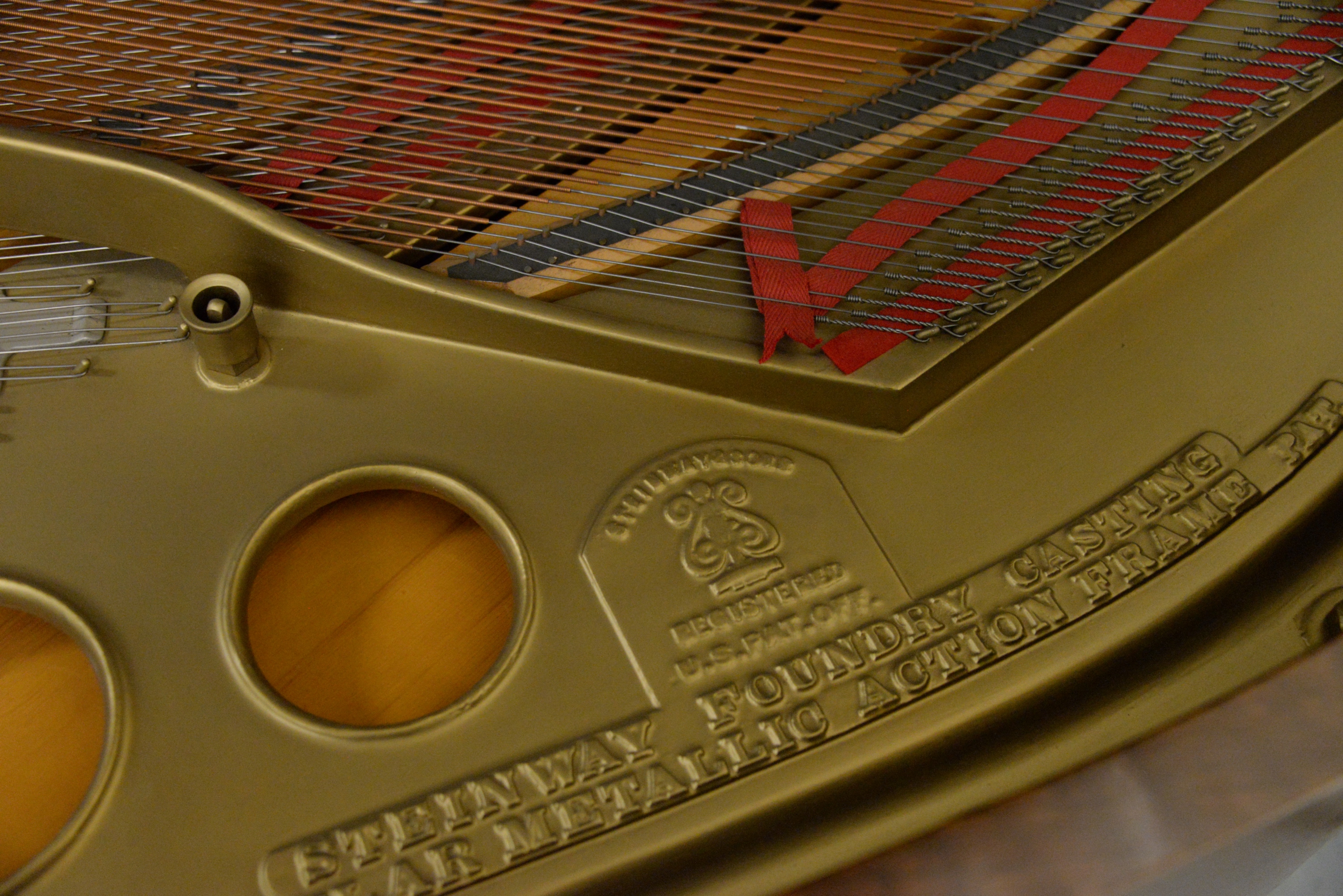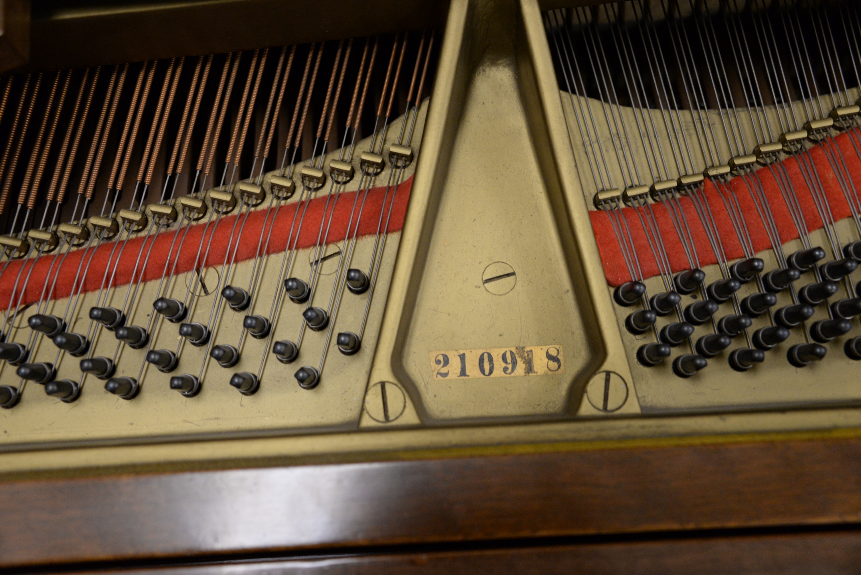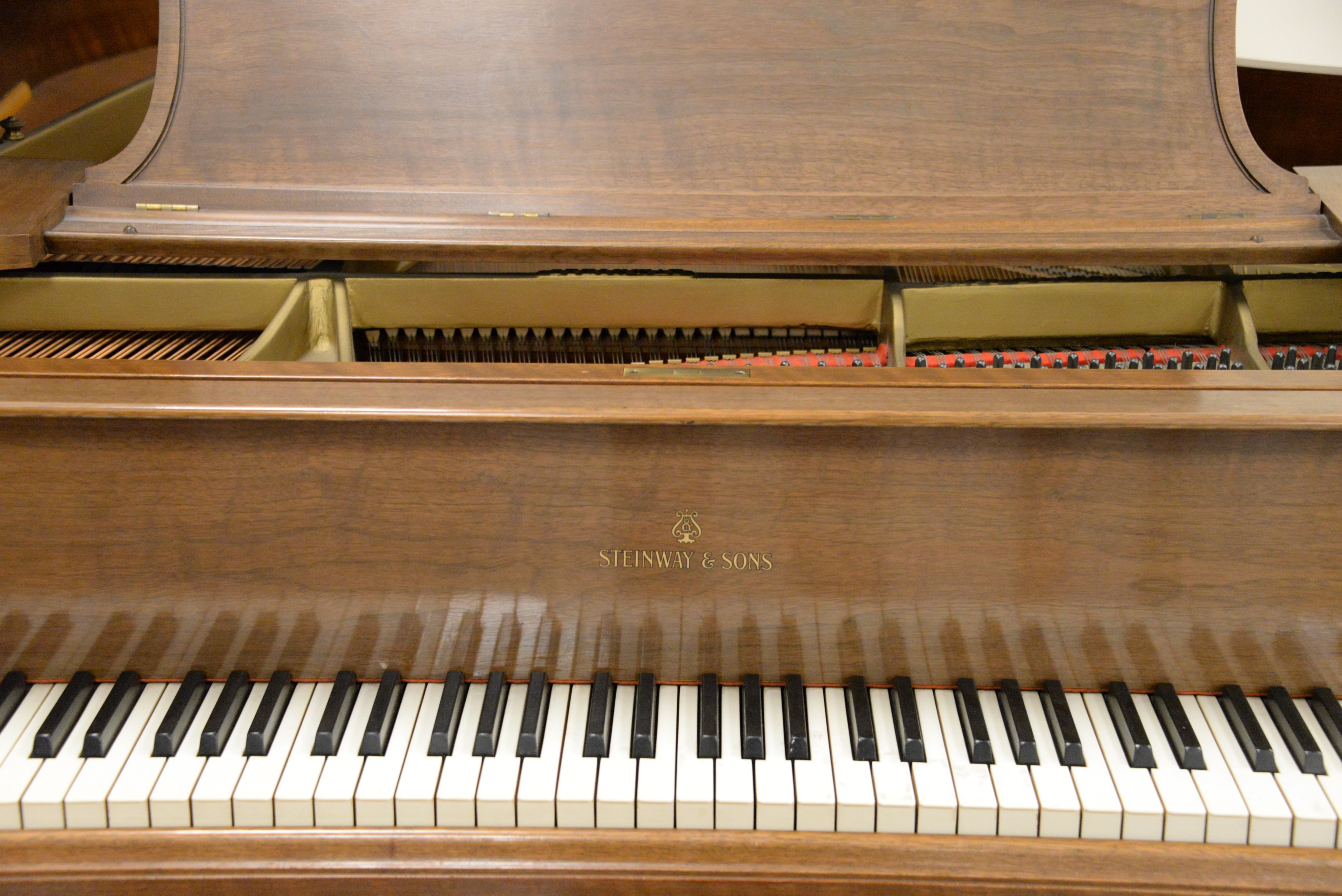 Steinway Mahogany Baby Grand Piano, serial no. 210918, sunbleached, piano height 41 inches, length 66 inches, width 56 inches.