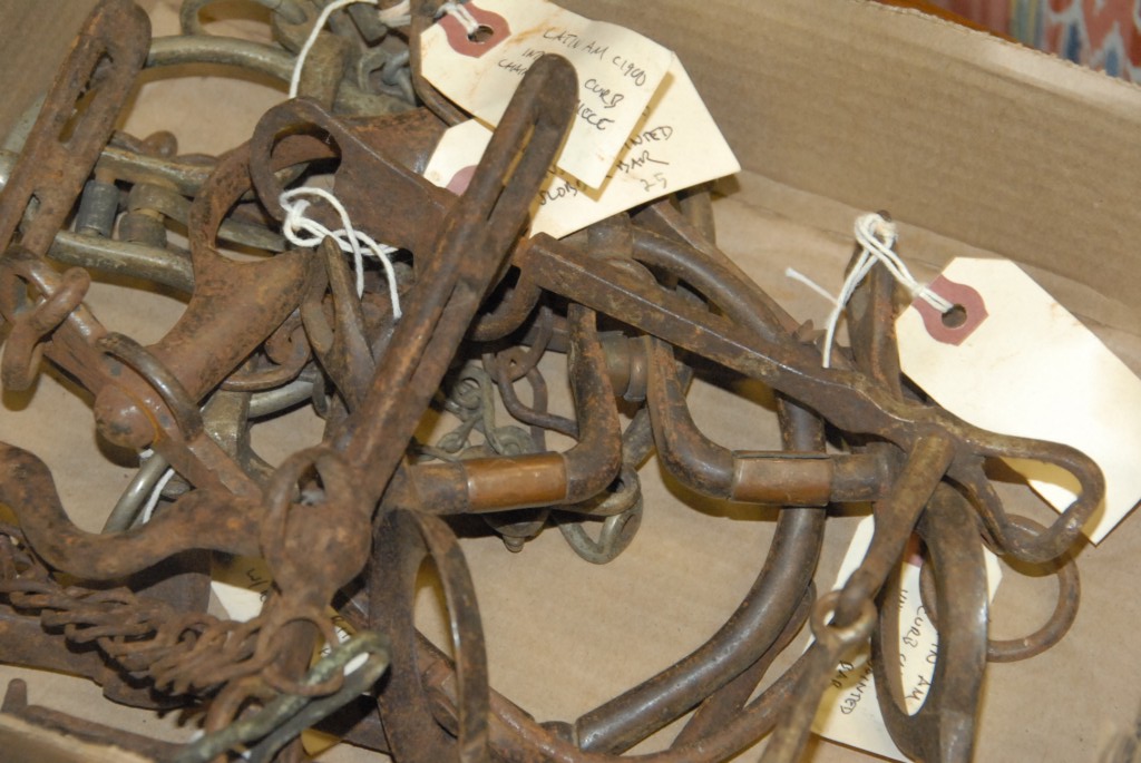 Two box lots of early iron and plated horse bits, some Mexican, Latin, Middle Eastern etc.