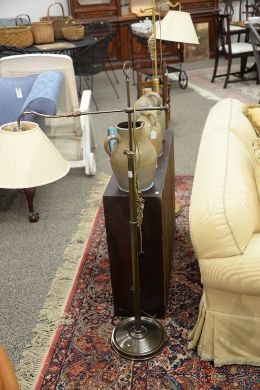 Two brass floor lamps. ht. 58 and adjustable ht. 49in. to 58in.