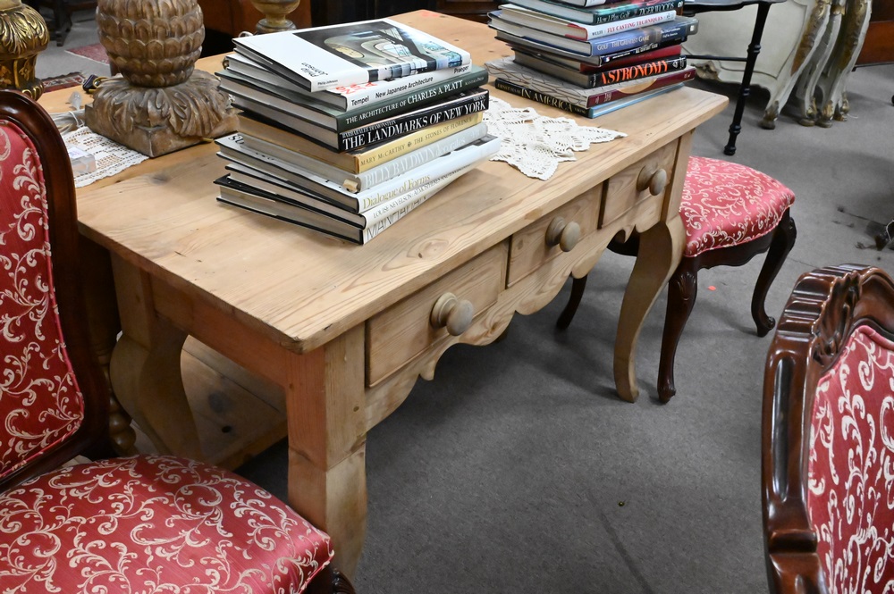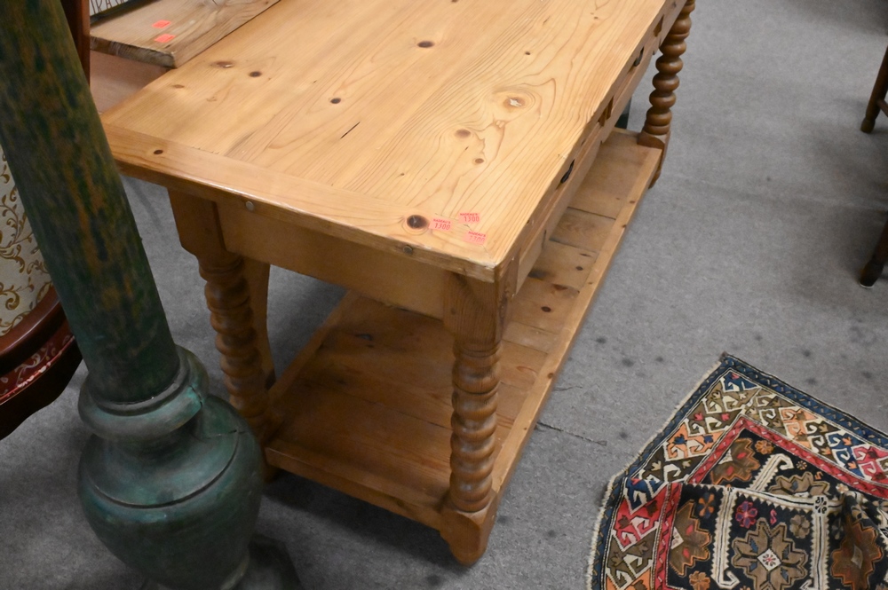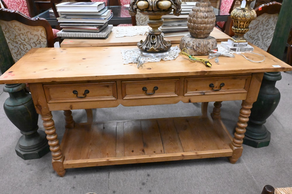 Two English Pine Servers, heights 30 and 31 inches, tops 20″ x 60″ and 20″ x 48″.