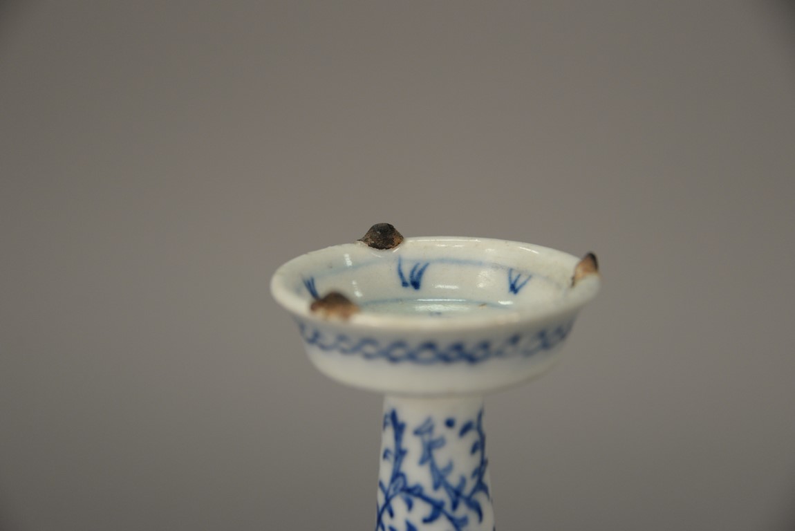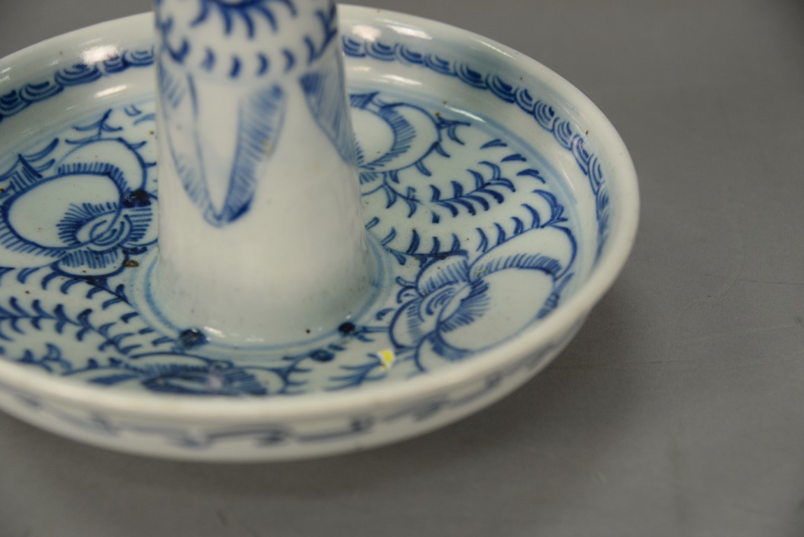 Chinese blue and white porcelain oil lamp, 19th century, with floral motif. ht. 11 3/4 in. dia. 8 1/4 in.