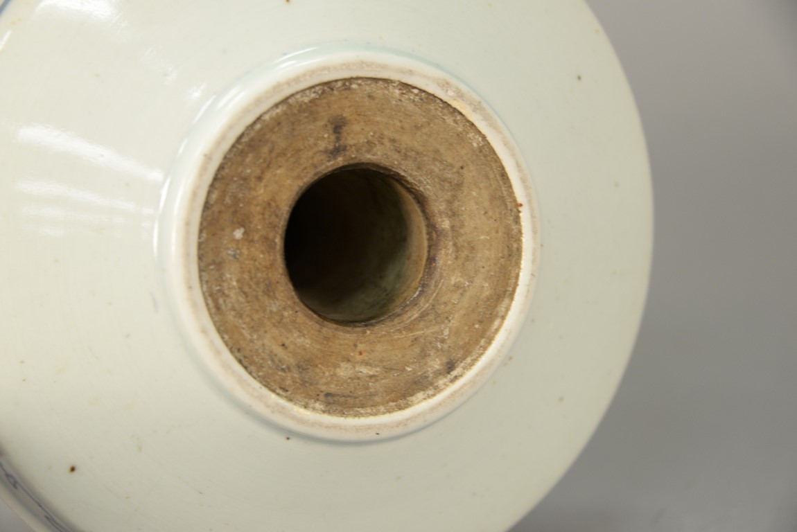 Lot 335: Chinese blue and white porcelain oil lamp, 19th century, with floral motif. ht. 11 3/4 in. dia. 8 1/4 in.