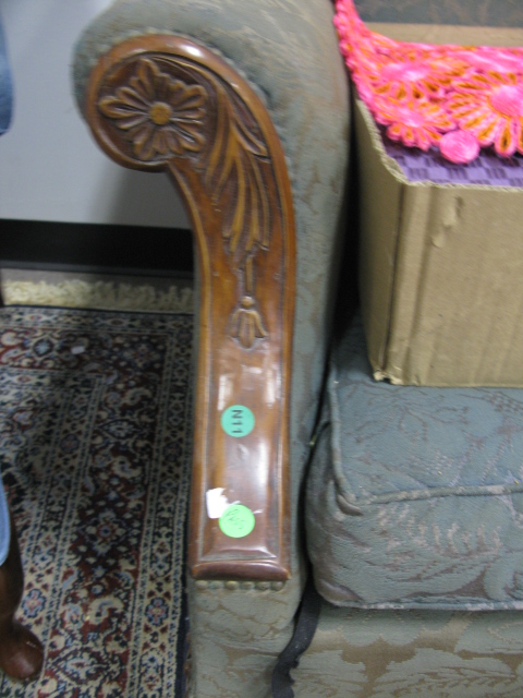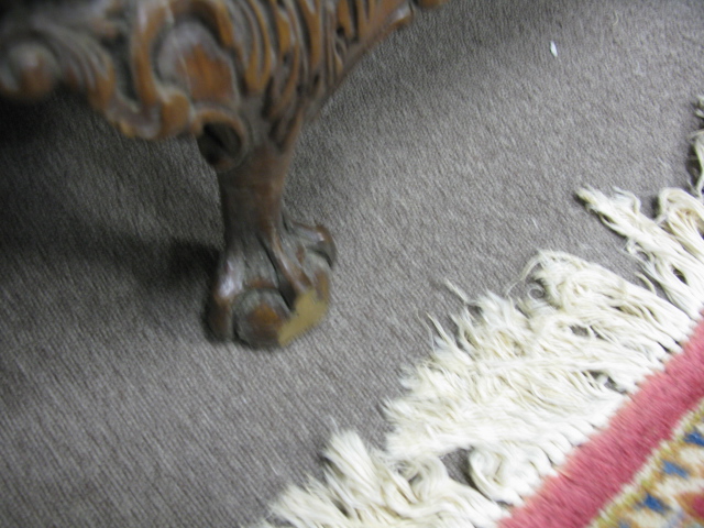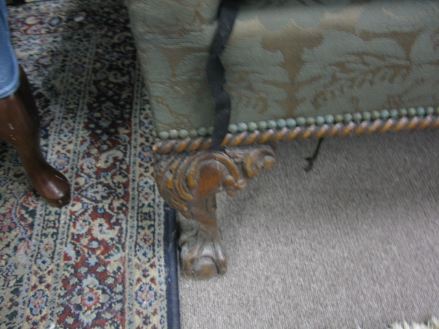 Chippendale style mahogany sofa with ball and claw feet one chip to one foot.
