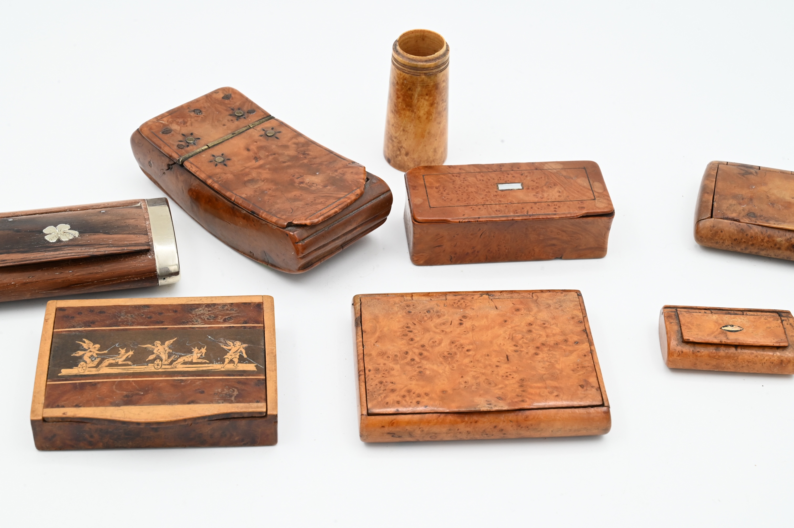 Collection of Eight Carved Snuff Boxes