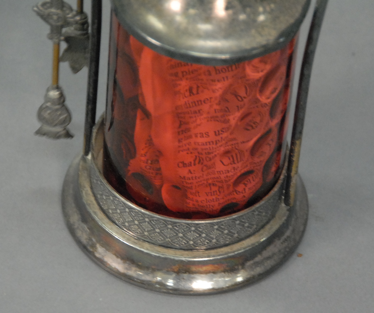 Cranberry glass pickle caster, ht. 10in.
