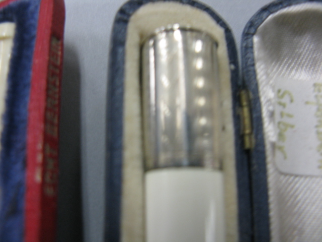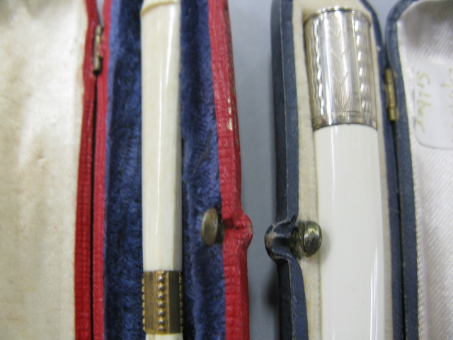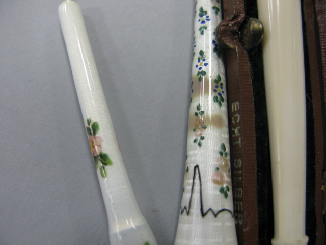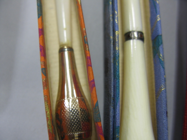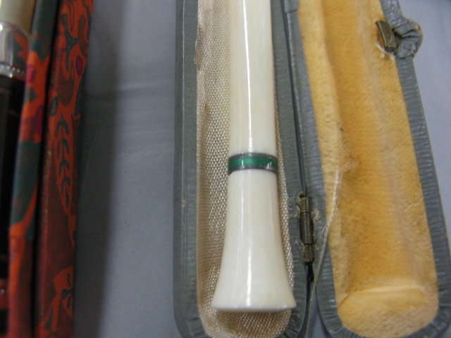 Eight cigarette holders, ivory with metal mounts and two enameled decorated, along with four cigarette holder cases.