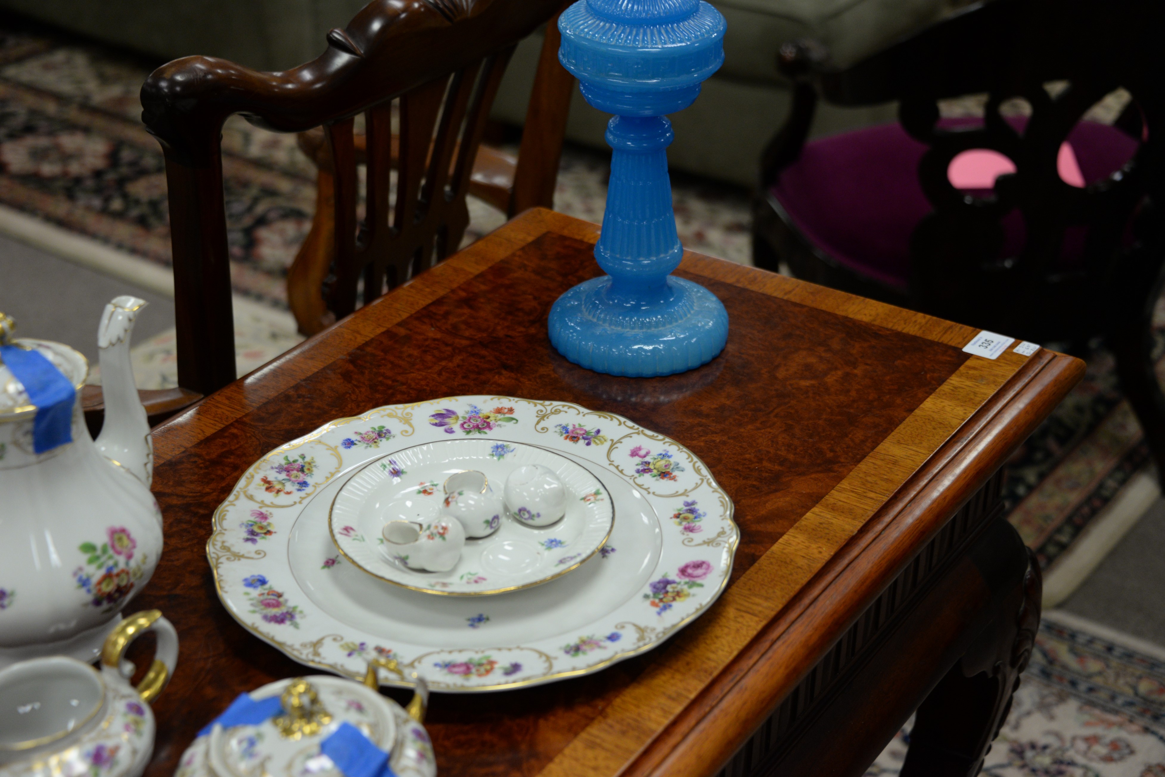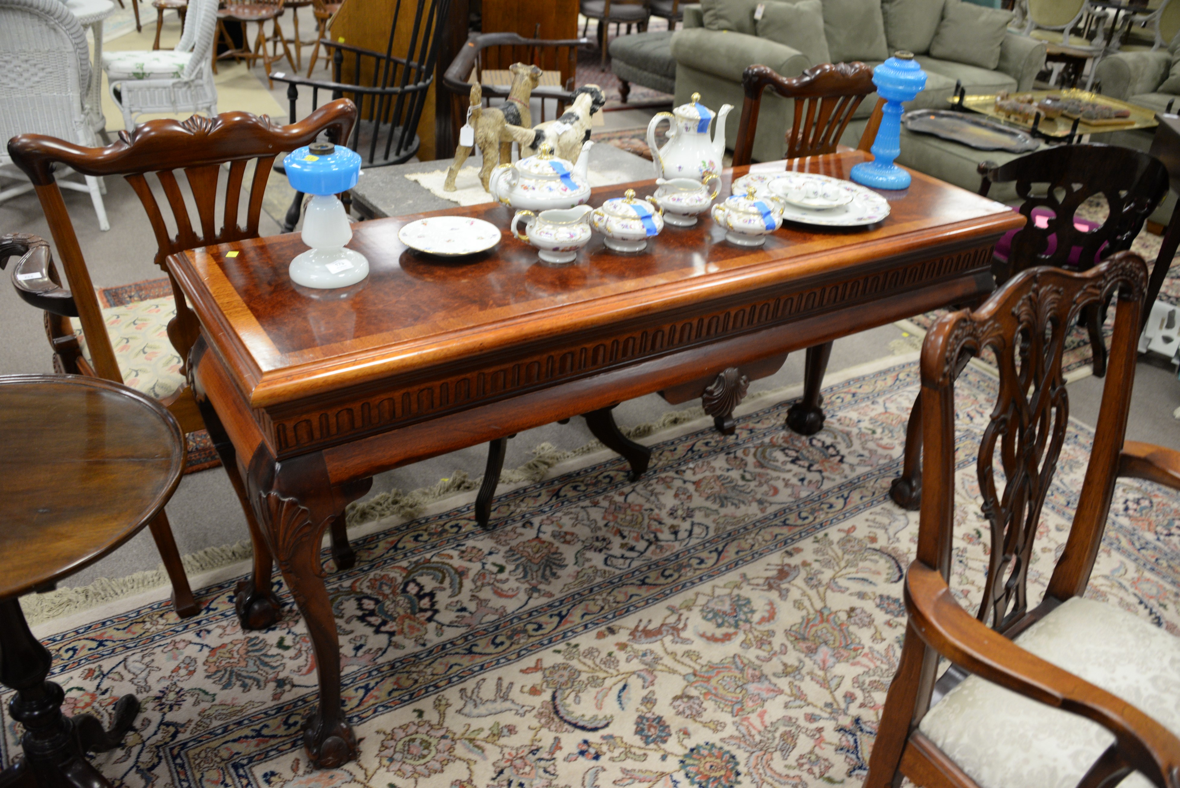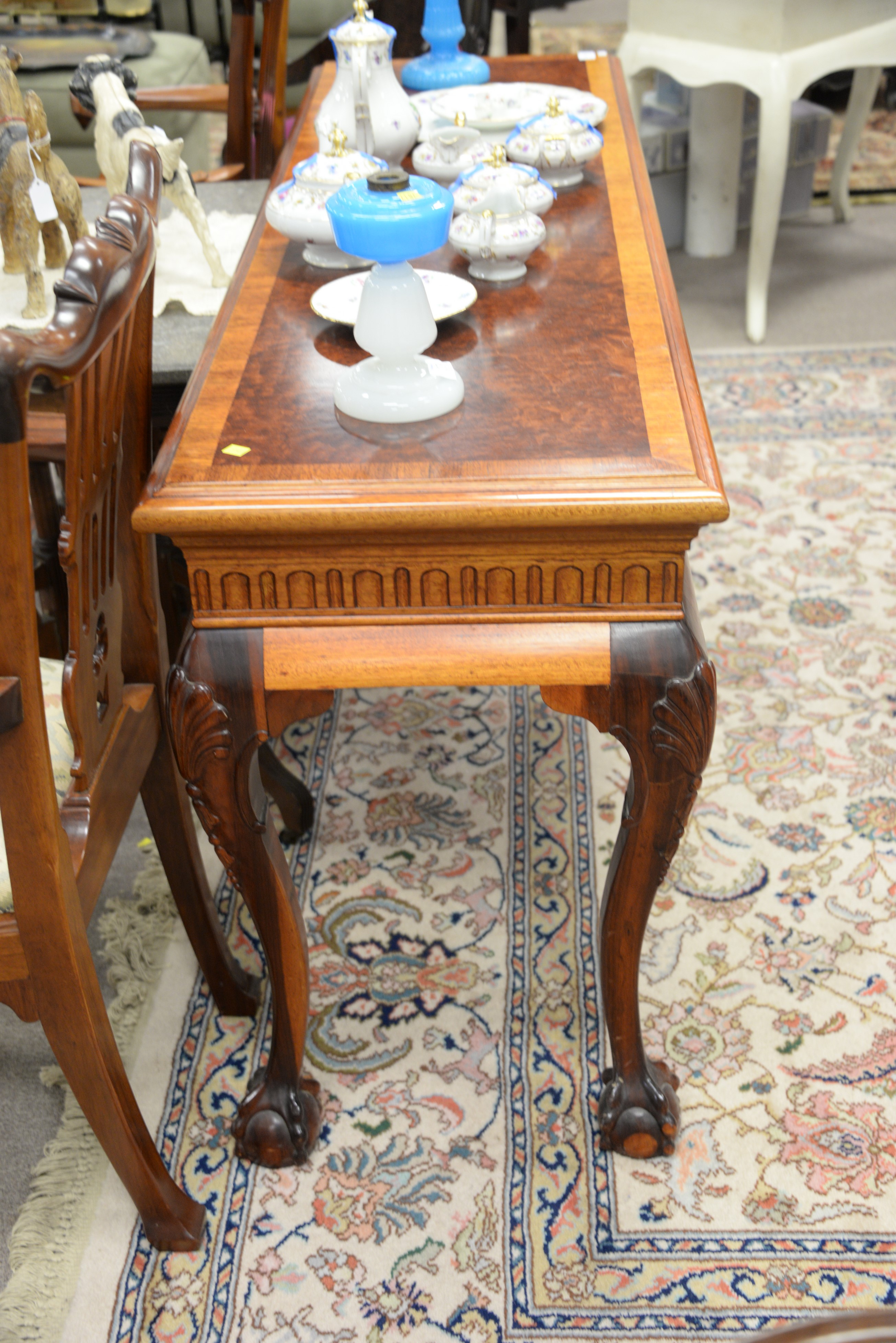 Mahogany server with ball and claw feet. ht. 32 in. top: 20 x 65