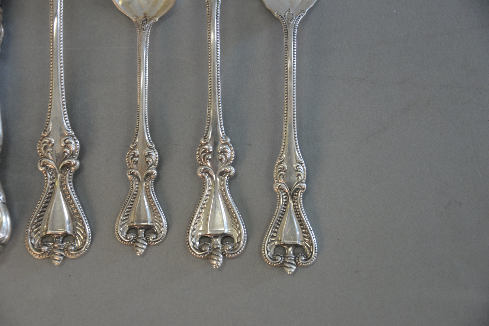 to include two sizes of spoons, two sizes of forks, 4 Gorham forks along with 24 knife handles