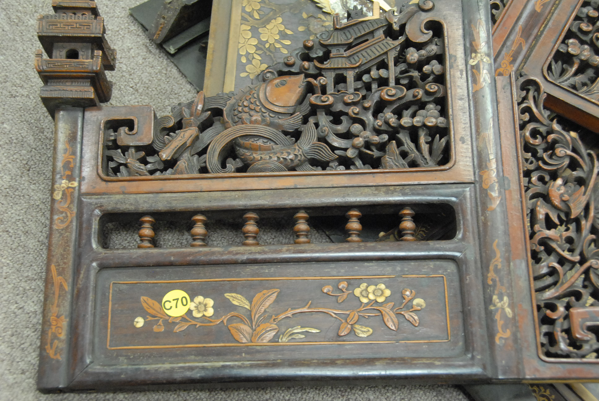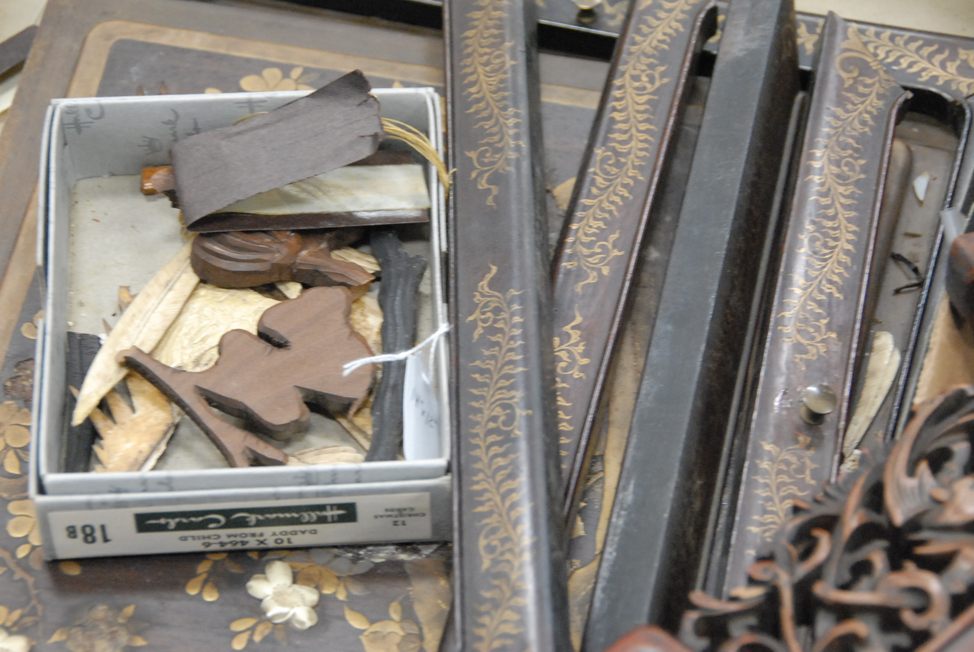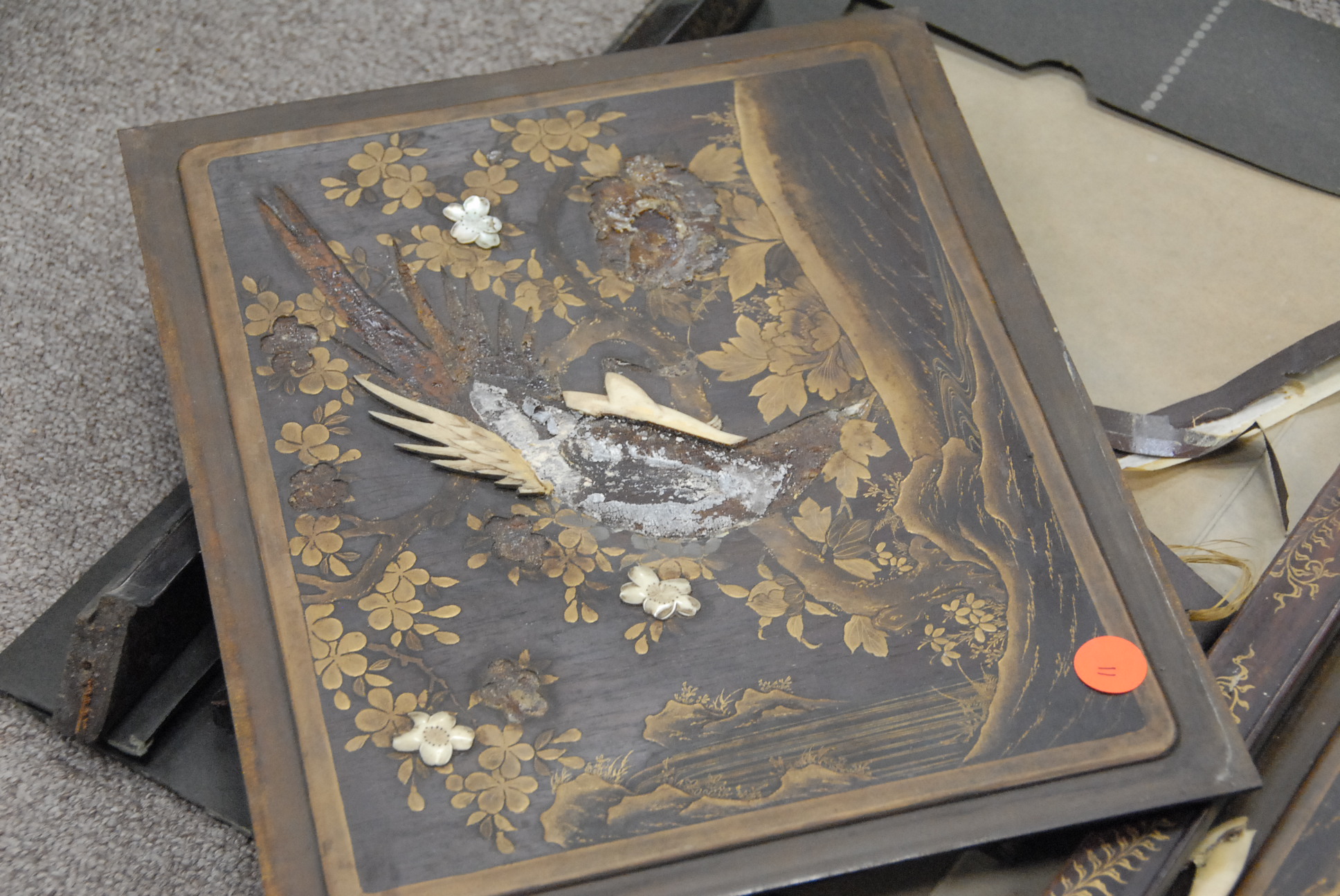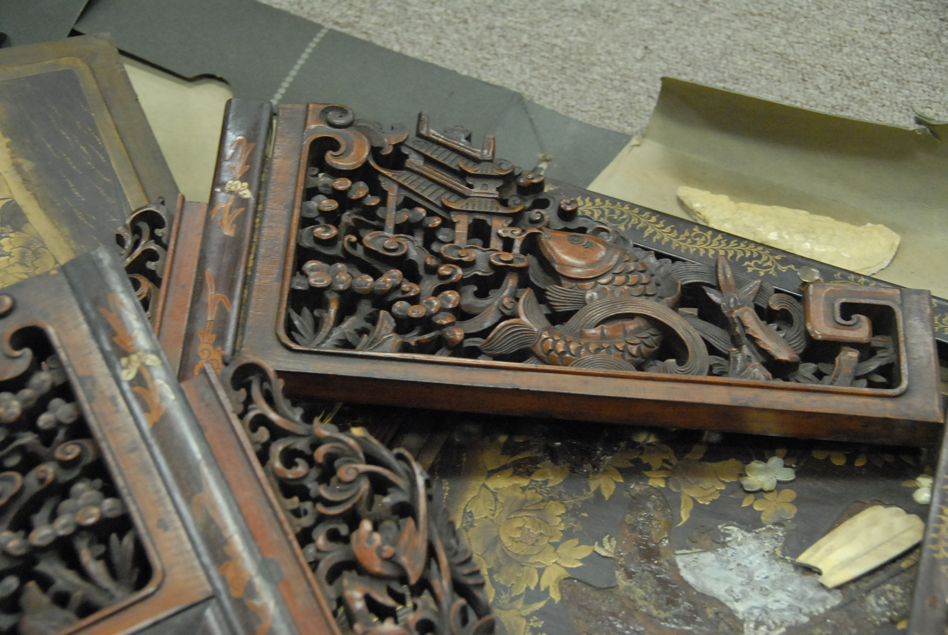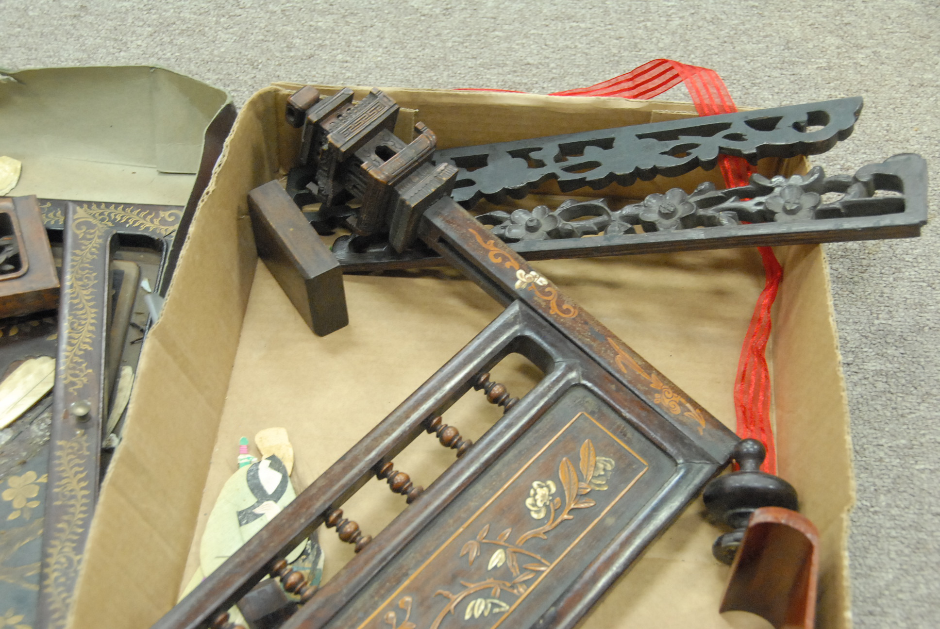 Two box lots of Chinese carvings and a couple of panels