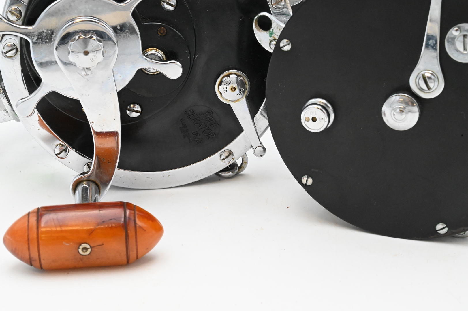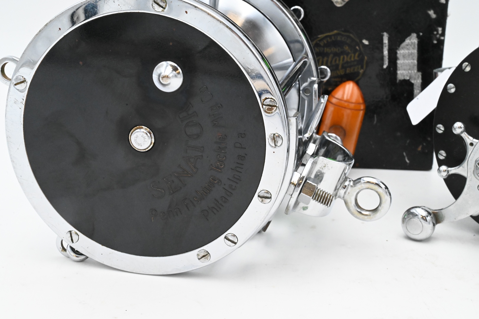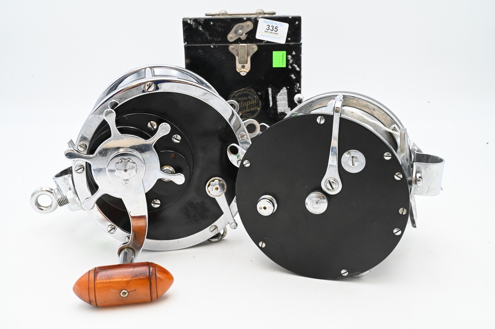 Two Large Vintage Reels, to include Penn 12/0 along with PFlueger 9/0 in metal box. Provenance: Estate of Peter Tillou, Litchfield, Connecticut.