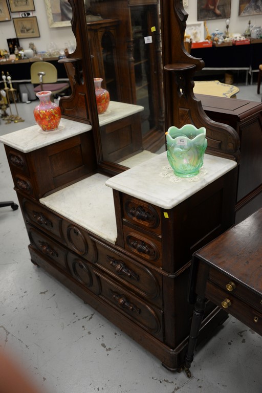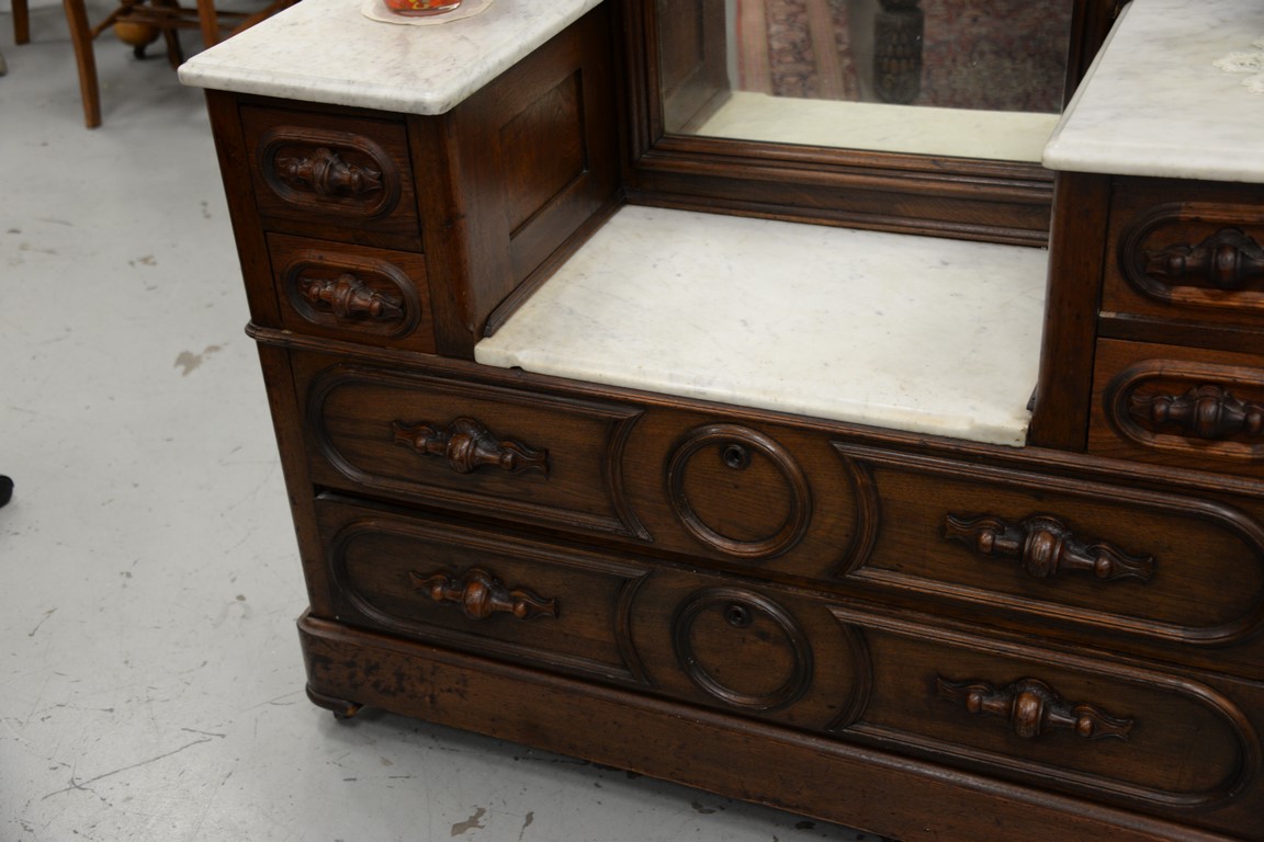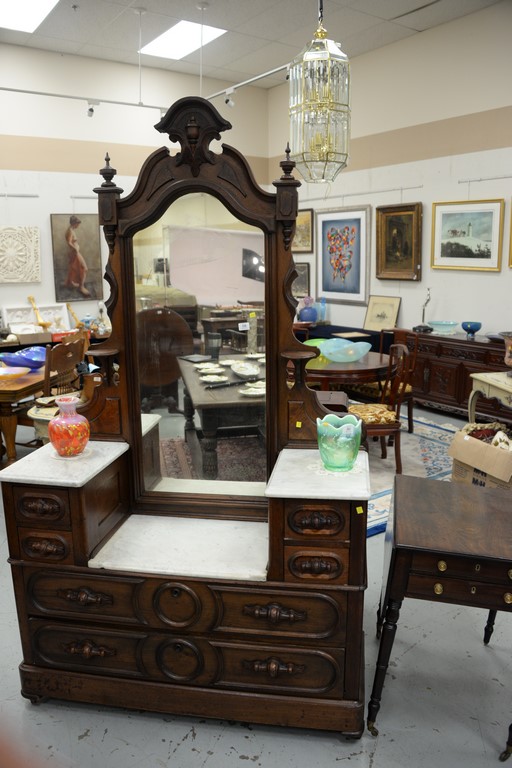 Victorian marble top dropwell chest and mirror. ht. 86 in. wd. 49 in.