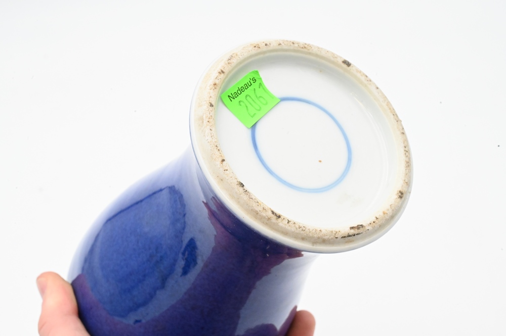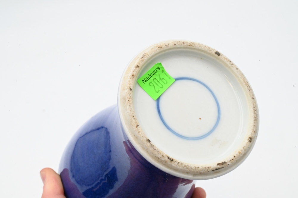 Lot 335A: Chinese Monochrome Vase, 19th century, powder blue classic baluster vase, unmarked, height 11 1/2 inches.