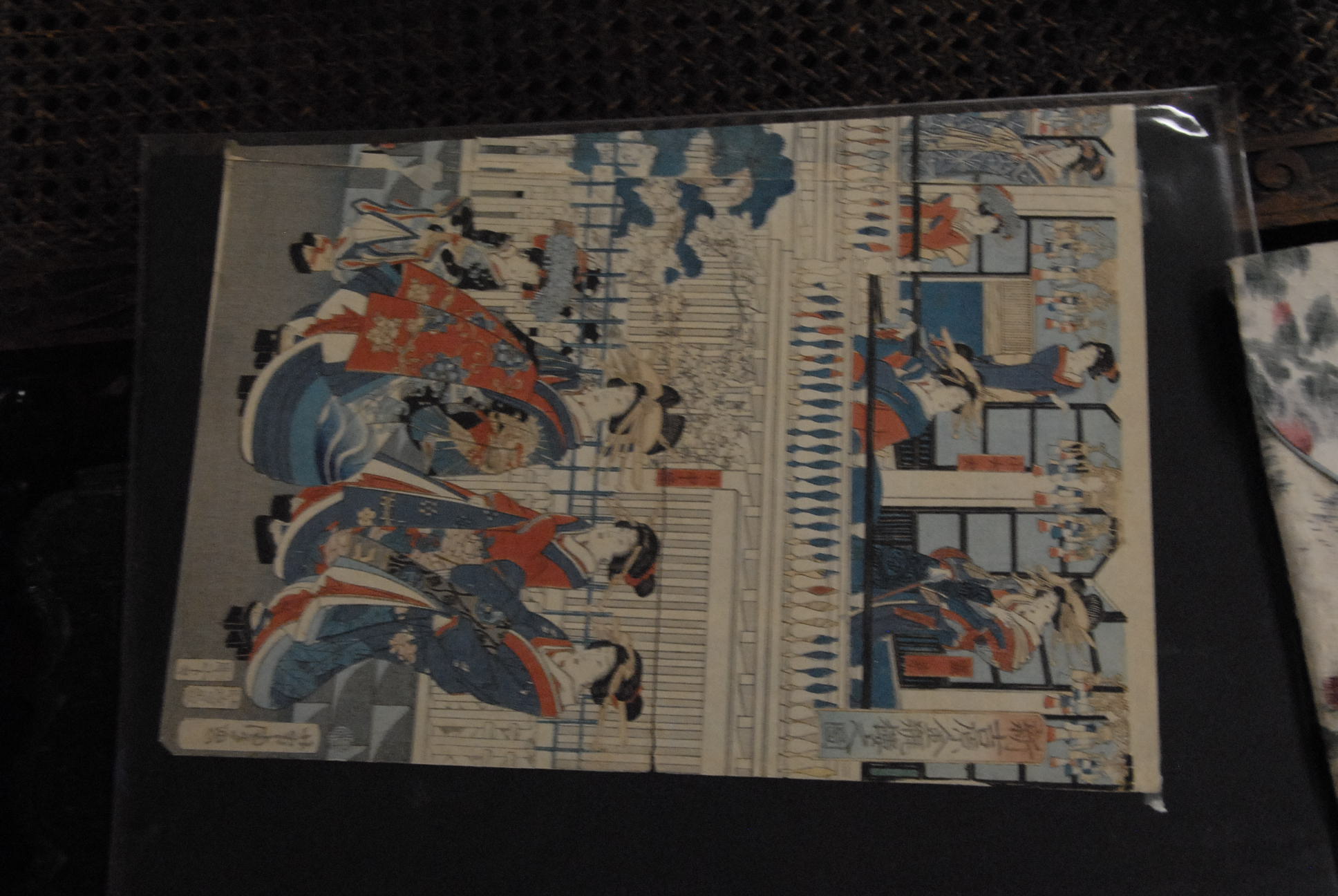 Group of Oriental prints including a woodblock print