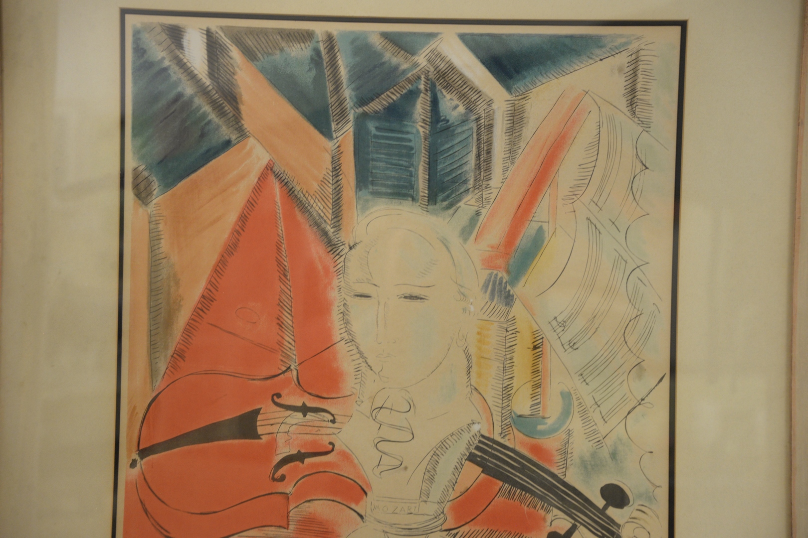 After Raoul Dufy (French, 1877 – 1953), Homage to Mozart, lithograph in colors on paper, signed and dated in plate lower right “Raoul Dufy 1915″, sight size 26 1/2″ x 20 1/2”.