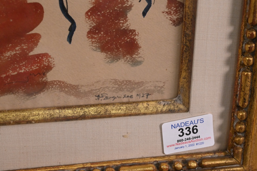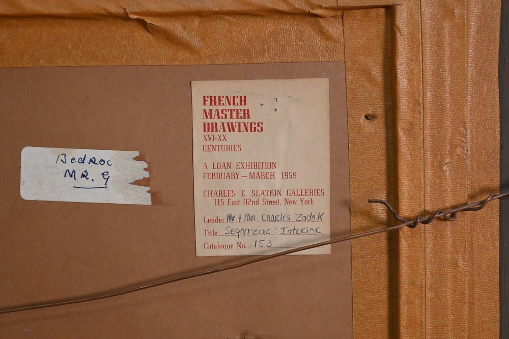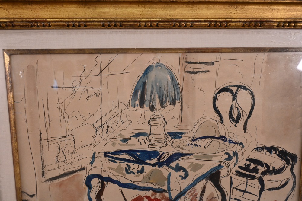 Andre Albert Marie Dunoyer de Segonzac (1884 – 1974), Segonzac Interior, table with lamp, watercolor and ink on paper, signed lower right A. Segonzac, 1927, sight size 14 1/2″ x 20 1/2″. Provenance: French Master drawings, 1959, exhibition from Charles E. Slotkin Galleries. Property from the Estate of Alexis Gregory, Sold to Benefit the Alexis Gregory Foundation.