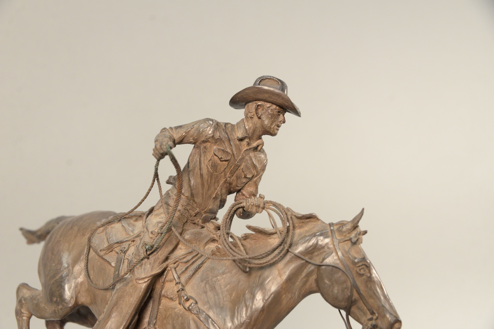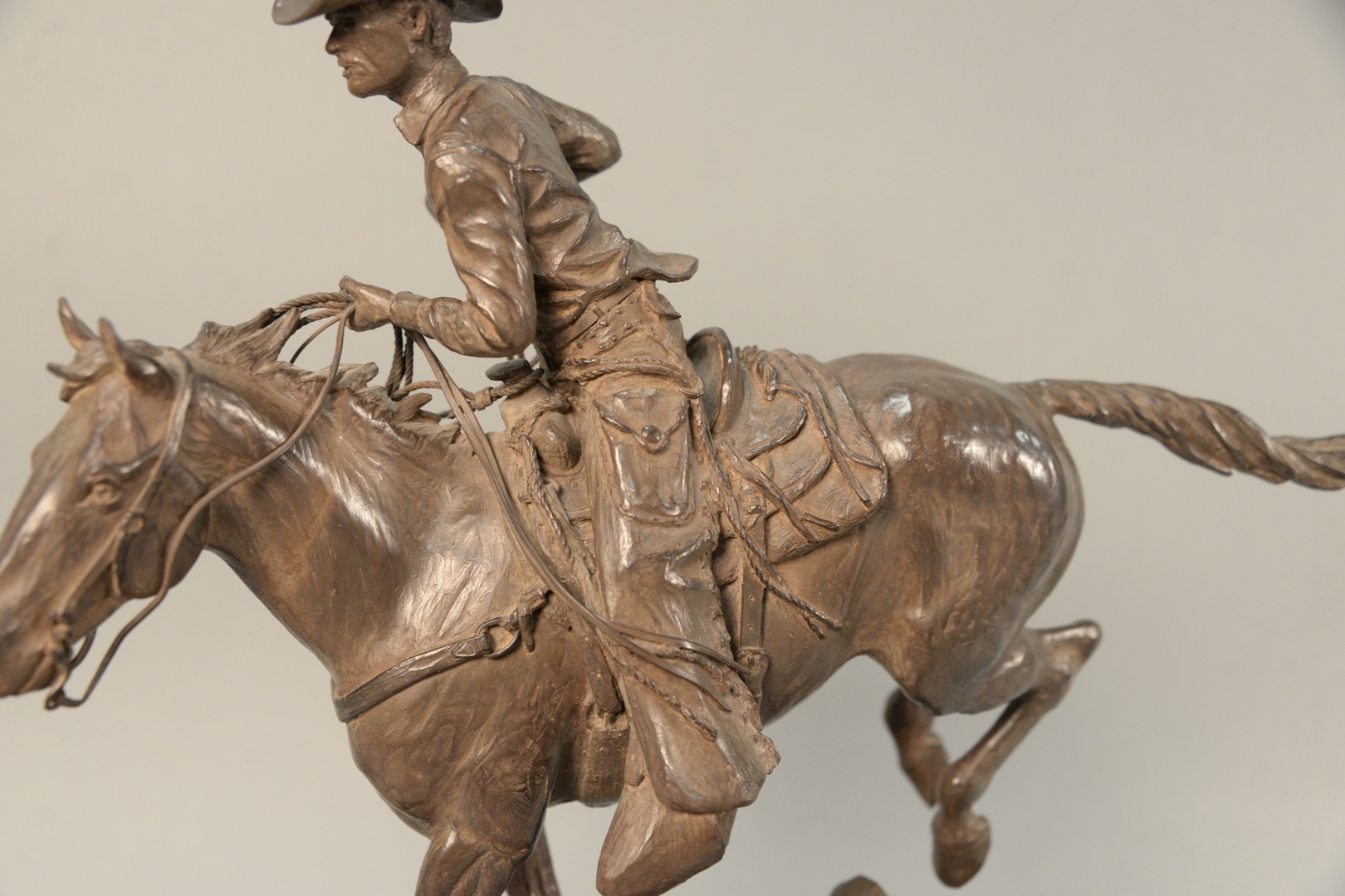 Lot 336: Bill Nebeker American, b. 1942 In Hot Pursuit bronze with brown patina inscribed and numbered 6/25 on the base height 17 1/2 inc…