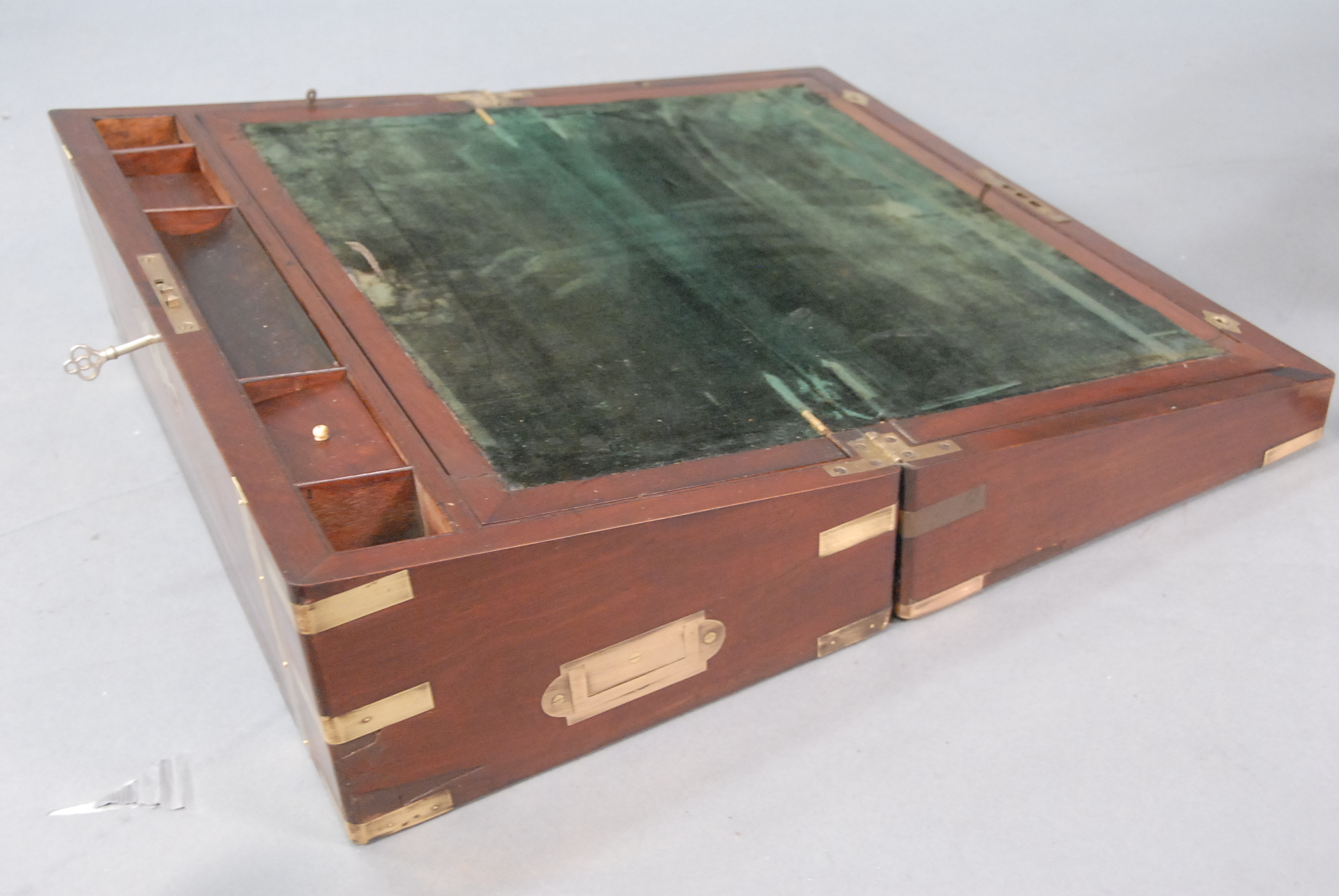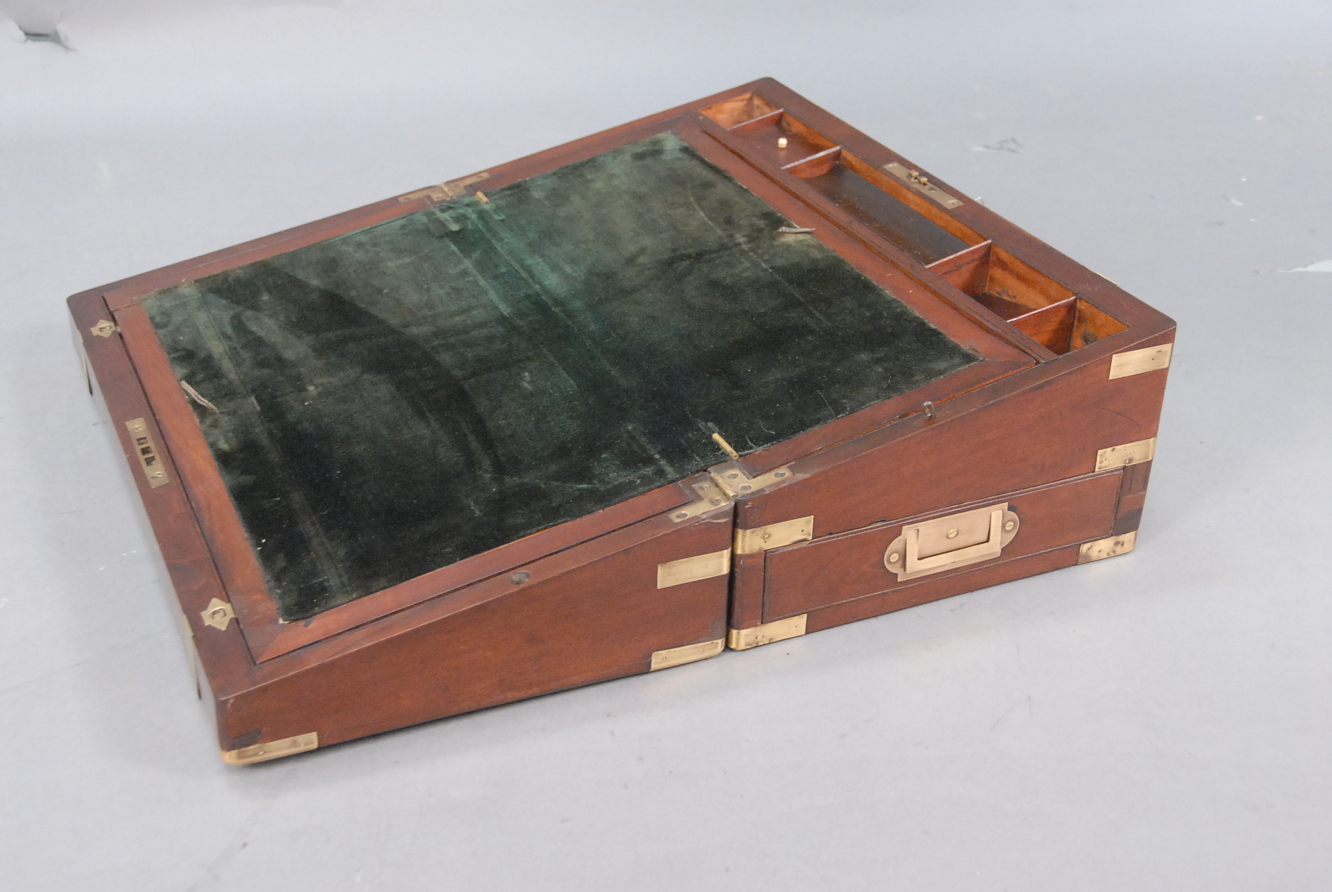 Brass bound mahogany lap desk.