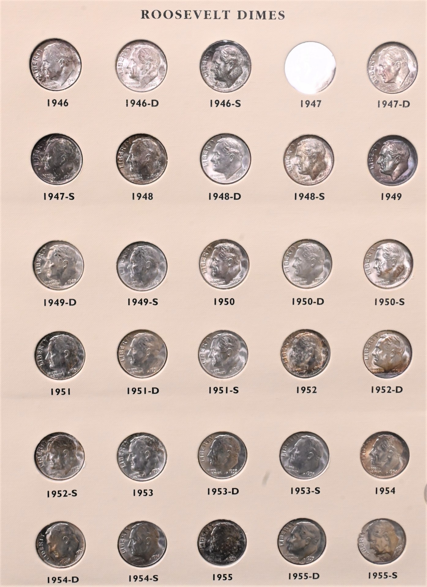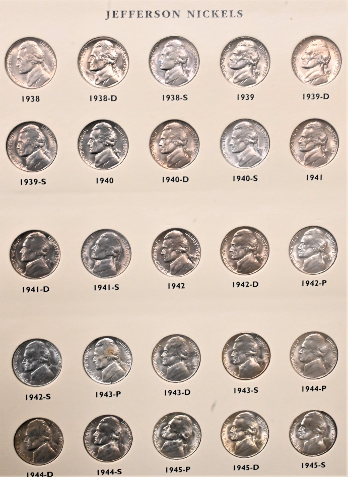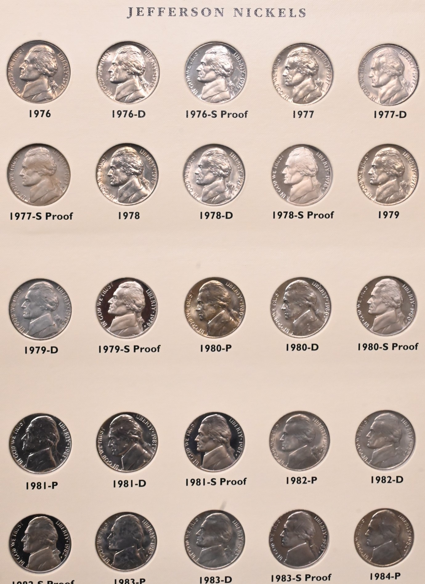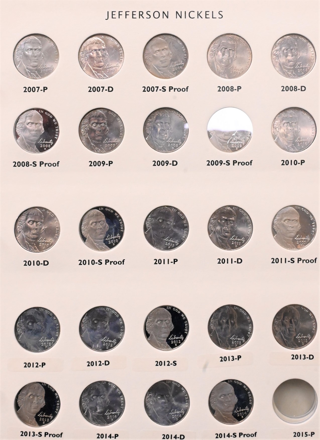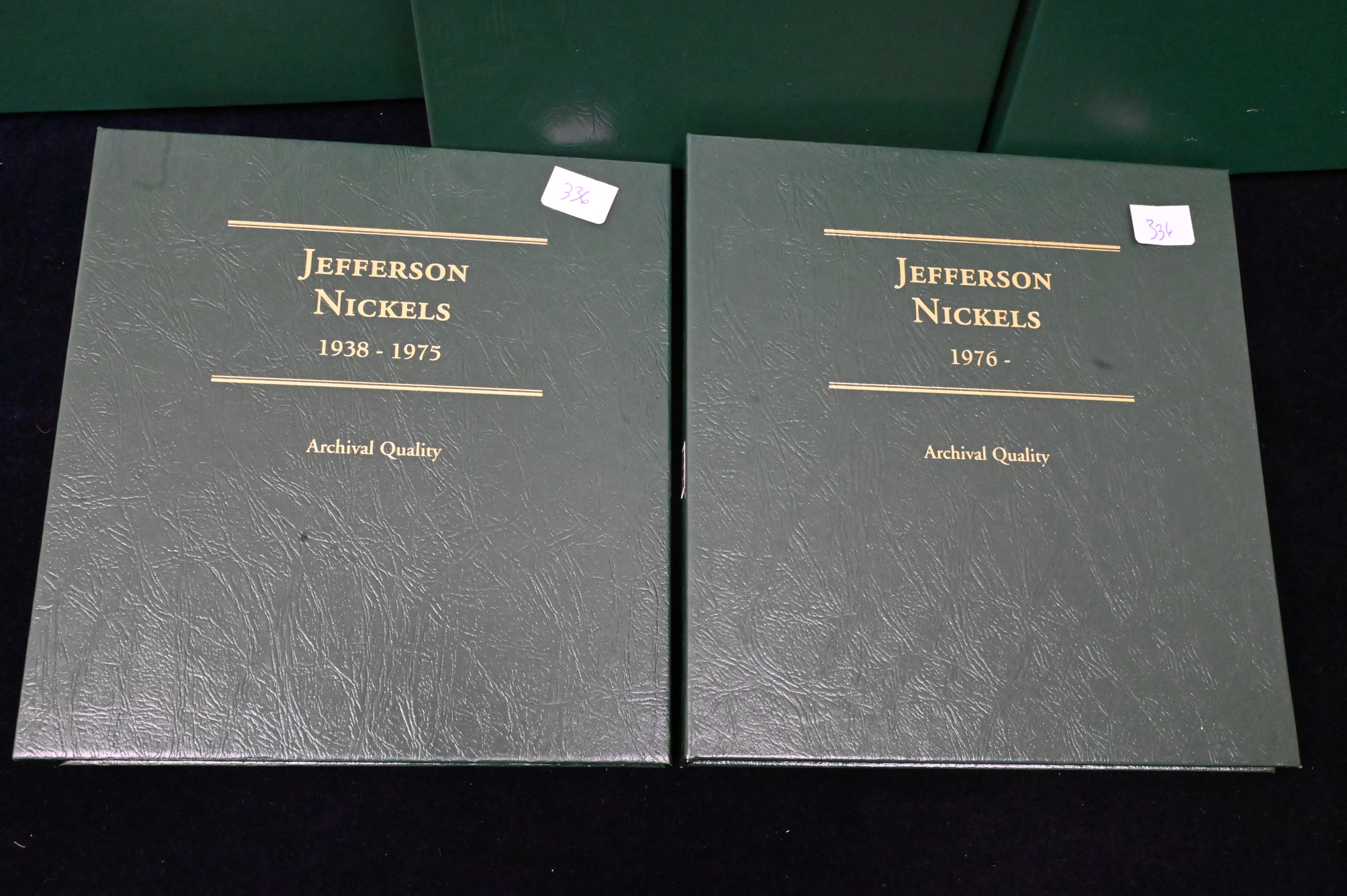 Five Coin Albums, to include Jefferson Nickels 1938 to 1975S, all UNC and some proofs. Plus 1975 to 2006 UNC and Proof and 2007 to 2014S, along with Roosevelt Dime album 1946 to 2012-S all unc and proofs complete, along with Roosevelt Dime album 1946 to 2012-S all UNC and proofs complete