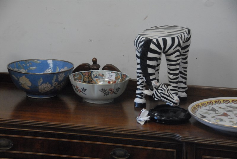 Lot 336: Large grouping to include six framed prints and embroideries, two lamps, charger, two bowls, Victorinox cuckoo clock, vase, etc.