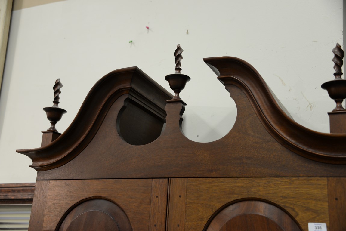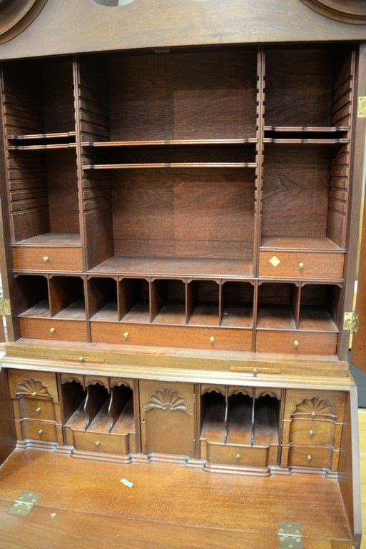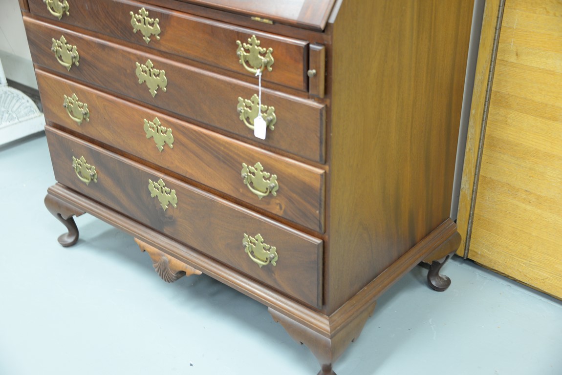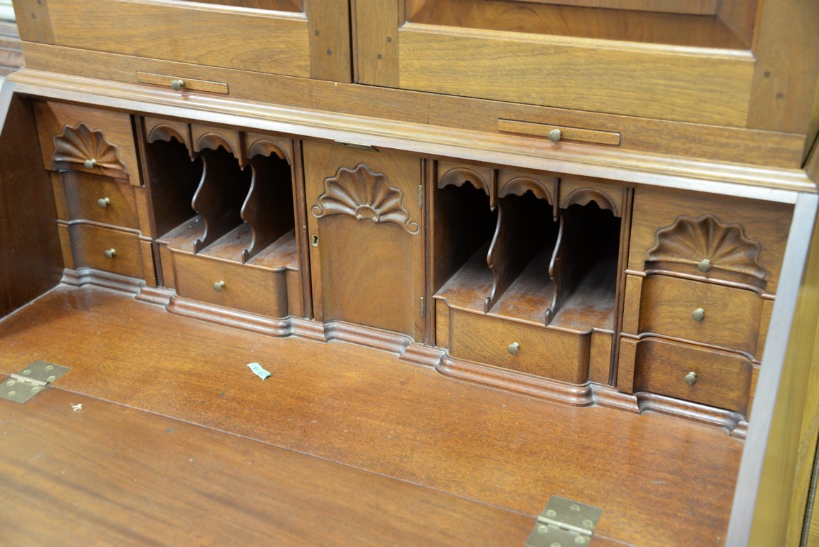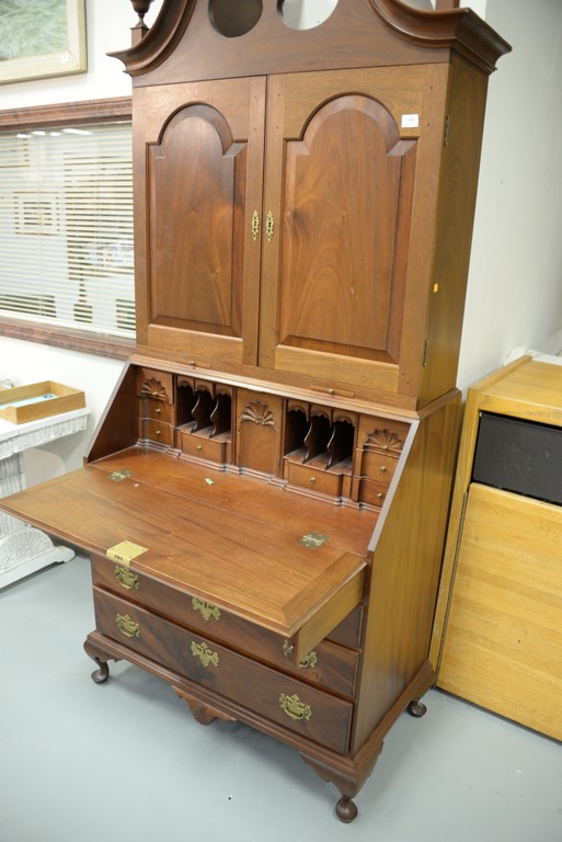 Lot 336: R. H. Effinger custom made Chippendale style mahogany secretary desk in two parts, upper section with full bonnet top over two raise…