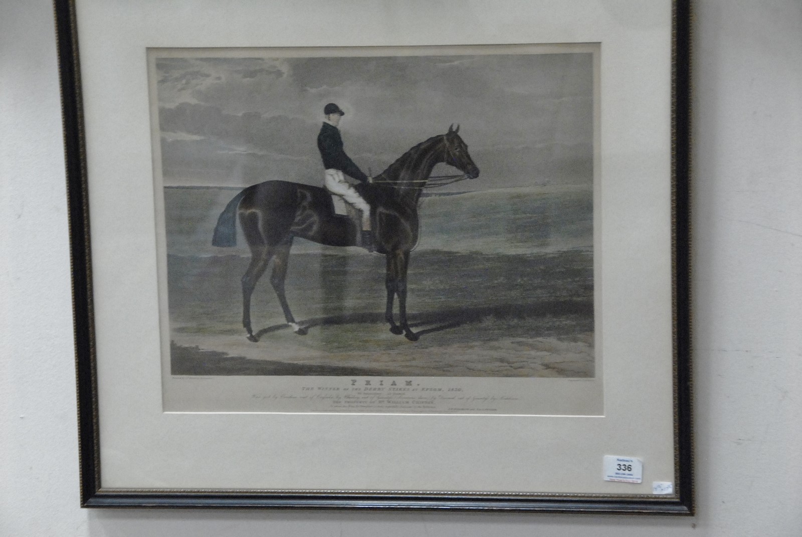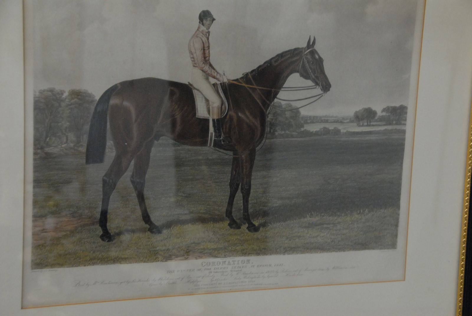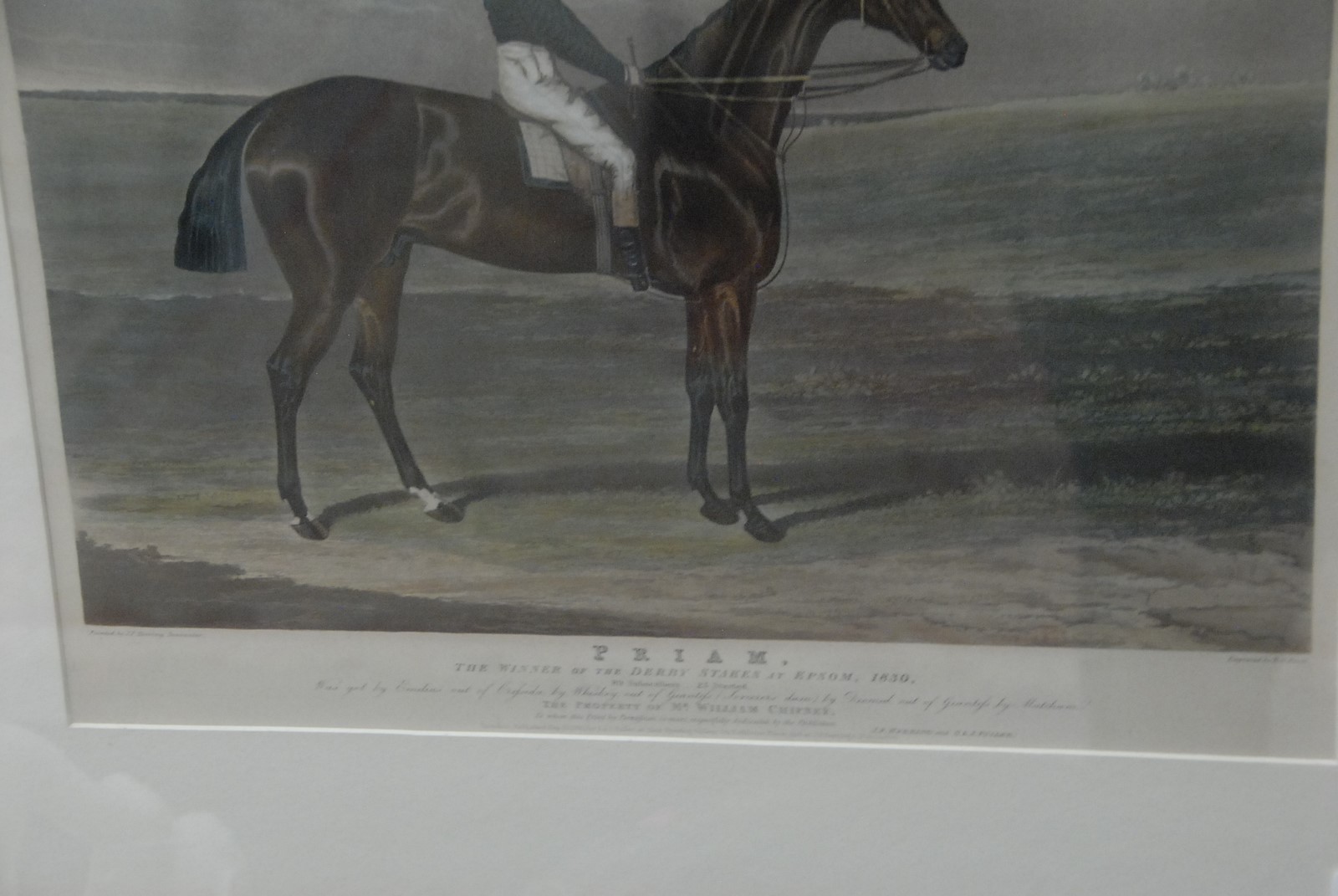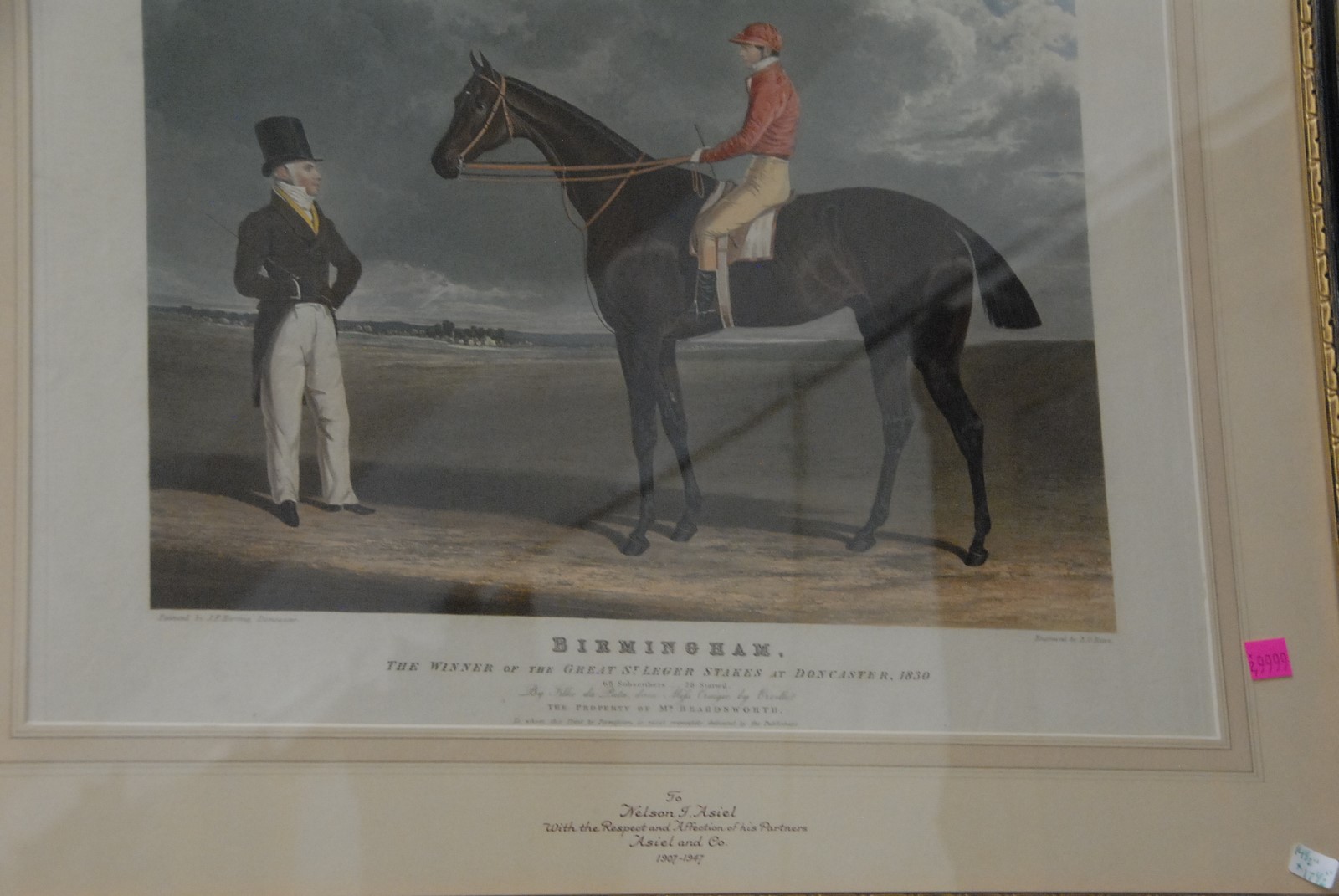 Lot 336: Three colored lithographs After John Frederick Herring 1795-1863 BIRMINGHAM The Winner of the Great St. Leger Stakes at Doncaster 1830 PRIAM and CORONATION marked lower left Painted by J. F. Herring Doncaster