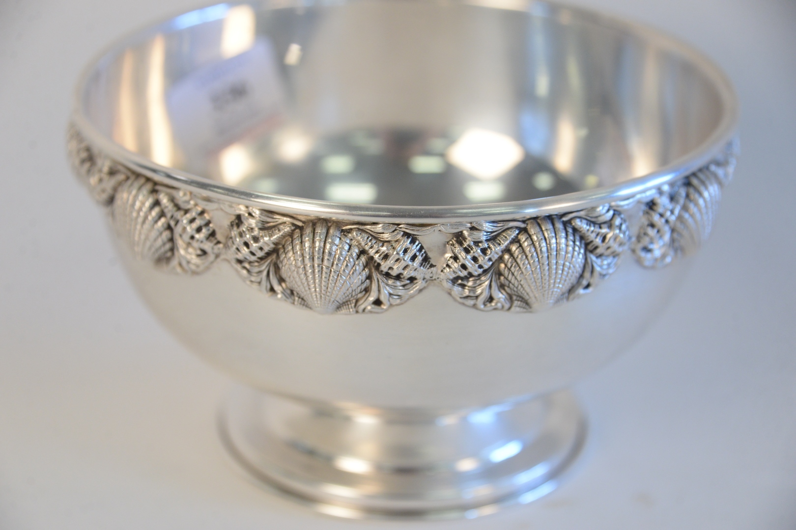Lot 336: Topazio Sterling Silver Bowl, Portuguese sterling silver bowl, with molded shell border, marked on foot. height: 4 diameter: 6 1/4…