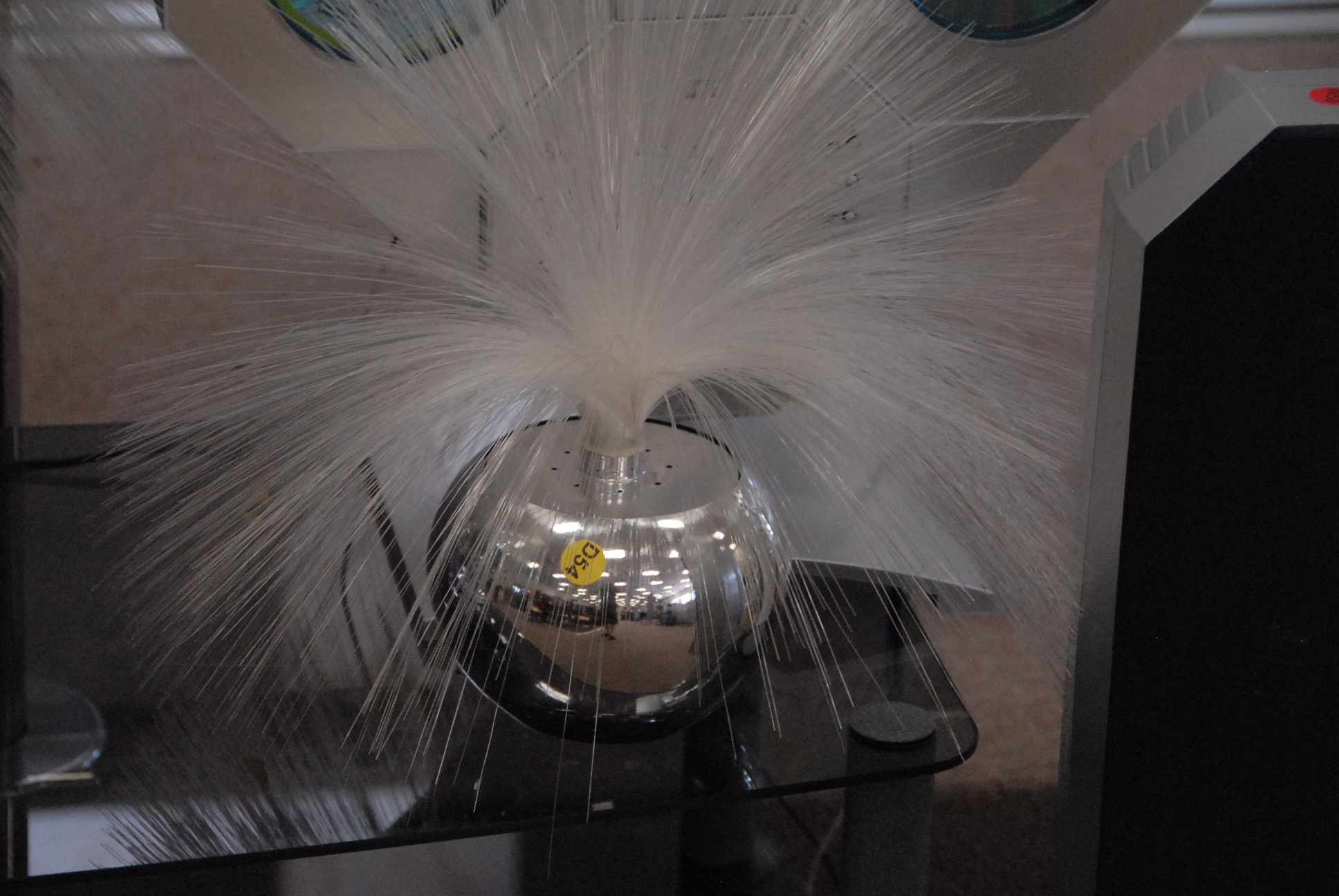Two chrome fiber optic lamps, one rotates and changes colors.