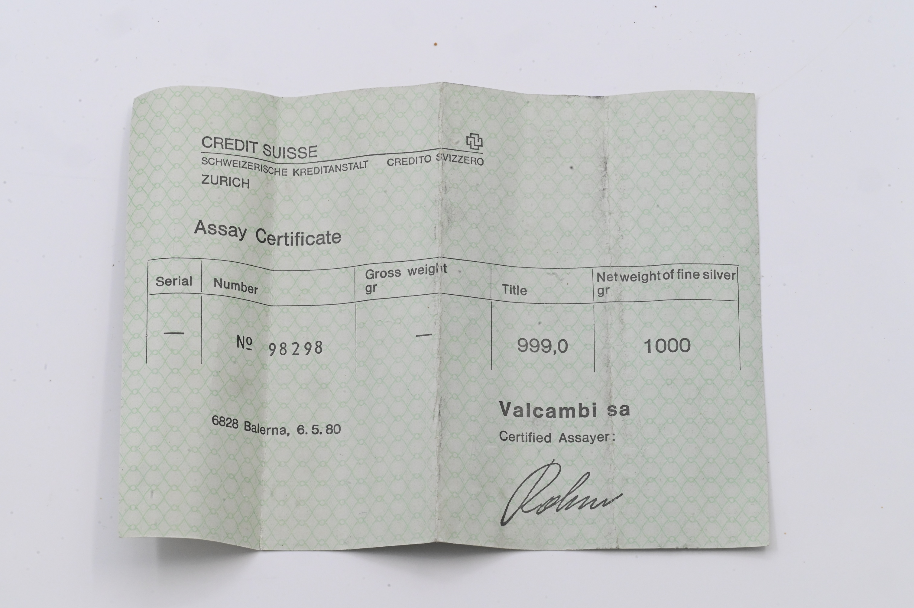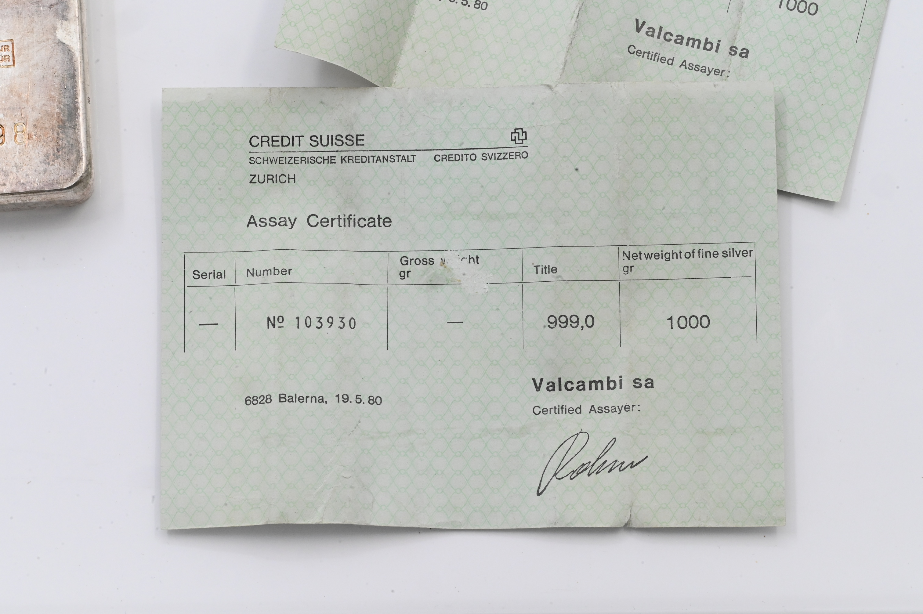 Lot 336: Two Credit Suisse 1 Kilo Silver Bars